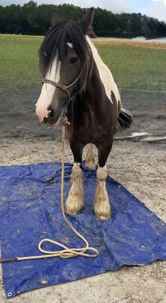 Ferry zoekt een nieuwe plek waar hij zich thuis kan voelen Hij is 8 jaar oud, ongeveer 1,55 m groot, een prachtige zwart-wit-bruin gevlekte Tinker met een uitstekende afstamming en een grote persoonlijkheid. Nu gaat hij op zoek naar een nieuwe familie waar hij echt kan aankomen. Ferry kent de klassieke dubbele longe, de traditionele handwerktraining, de grondwerktraining en het longeerwerk met rijden. Ook het rijden met de longe is hem bekend. Hij heeft ook rusttraining gehad, die hij betrouwbaar heeft doorstaan. In het terrein is Ferry regelmatig onderweg, zowel alleen als met andere paarden. Ook in het verkeer waren we met hem onderweg, en dat doet hij geweldig: of het nu auto's, fietsen, tractoren zijn, van voren of van achteren, Ferry blijft kalm en braaf. Onder het zadel wordt hij momenteel verder opgeleid. Hij loopt stap, draf en galop en laat al mooie beginstukken zien van schouderbinnen, travers en binnen- en buitenwaarts rijden. Zoals het hoort bij een stevige Tinker en pony, kan Ferry soms ook eigenwijs zijn. Daarom zoeken wij voor hem een even eigenwijze, duidelijke persoon die weet wat ze wil en hem liefdevol, maar consequent de structuur biedt die hij nodig heeft om de trouwe en lieve partner te worden die je als paardenmens wenst. Zijn wereld is duidelijk het terrein, dat vindt hij het allerleukst. Buiten is Ferry een kleine motocross-offroad-machine die gewoon plezier brengt: overal overheen, overal doorheen, zolang en zover de hoeven het toelaten. Dat is zijn motto. Natuurlijk is Ferry smid- en trailerproef, hij is gezond geregistreerd, sociaal betrouwbaar en gewend aan kinderen en honden. Ferry is een echte vriend, een buitenpaard, een type met hart en karakter. We zoeken voor hem een familie die hem accepteert zoals hij is en ervaring heeft met paarden.
