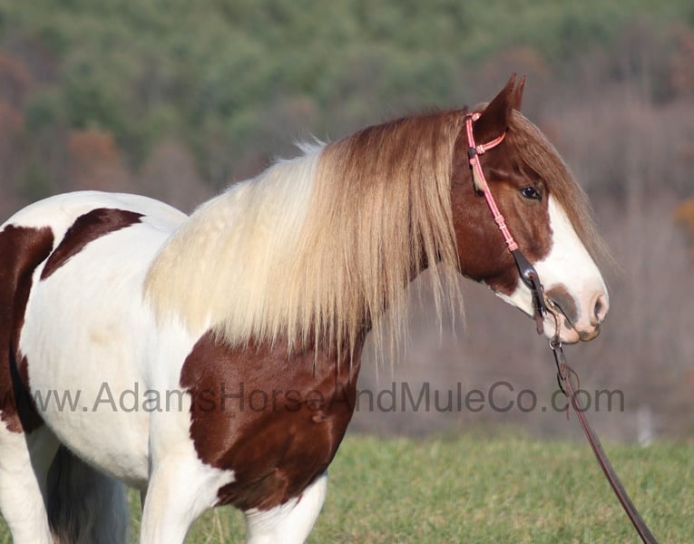 Go to visit our website for more pics and a video. AHAMC has been in the horse business and sold horses over the internet since 2005. We have a long track record of success with hundreds of happy customers. We work hard to match riders with the correct horses and specialize in beginner safe, family friendly horses that have been used and checked out by our family! Valadium Pride aka Val is a stout built registered Gypsy Horse gelding that is standing around 15.2hh. He will weigh 1250lbs, he is a 2018 model and he has all the good looks, the feathering and (the best part) the mindset that anyone could ask for! Not only does he look cool, he has all of the other boxes checked as well… he is Mr. Personality, as friendly as they come, loves attention and is very calm natured. Val is out of the same breeding program as several other top draftcross geldings that we have had over the last 4 years and every one of them has the right mind with the calm nature that makes them great family horses. Val has been with us since last year and has completed the natural horsemanship training and has done liberty work and he also knows some tricks as he will bow, lay down and set on his rump. Val has been ridden by every member of our family all the way down to our 6 year old daughter. He has been ridden down the highways and he is traffic safe as well. Val is great on trails and he will cross creeks, ditches, logs and navigate rough rocky areas. He has a smooth jog, a VERY VERY nice easy to set lope, a good stop, turns a circle both ways and backs with ease! He has been exposed to all kinds of wildlife such as deer or turkey or other animals like cows or dogs and will go anywhere that he is asked too. He has been rode many miles in the mountains of Eastern Kentucky and encountered every obstacle possible on the trail. He will go up or down even the steepest slopes, across deep creeks, over downed trees, and over all types of rough terrain while still being sure footed. Val is not cinchy, cold backed, does not crib or weave. In addition to riding, Val has also been driven down the highways as well. Val is a super cool horse that anyone is sure to love!!! Feel free to call Eric 606-308-2461 with any questions.