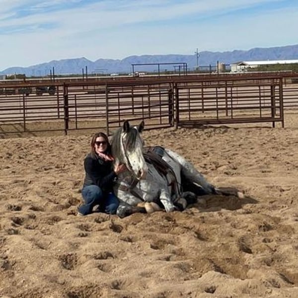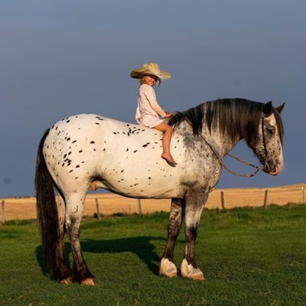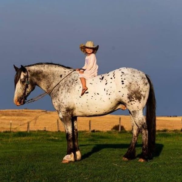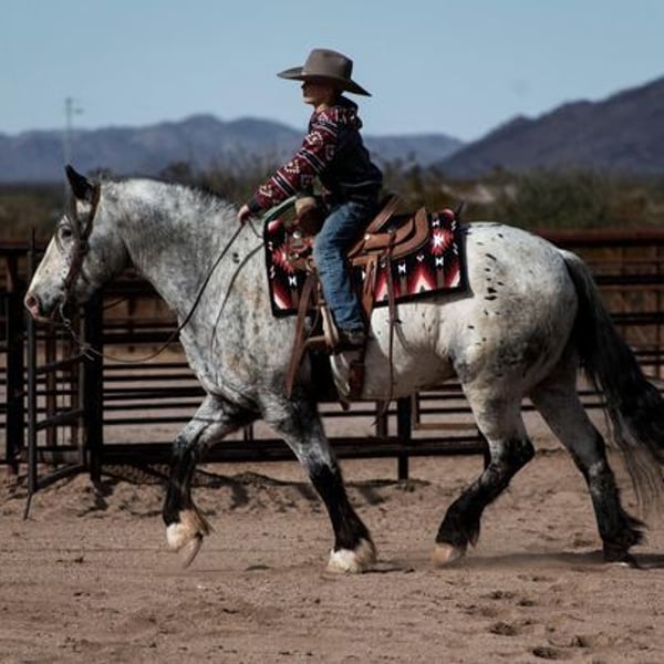 Jungle Jim wird von J Arrow Livestock angeboten, einem der bekanntesten und vertrauenswürdigsten Namen in der Branche. Jungle verkauft mit einer 30-Tage-Garantie (rufen Sie uns für Details an). Um Ihnen einige Hintergrundinformationen zu Jungle Jim zu geben: Wir haben ihn ursprünglich im Februar 2023 beim Cowgirls Cadillacs Verkauf in Wickenburg, Arizona, an eine wunderbare Dame verkauft, die ihn in vollen Zügen genossen hat und ihm das beste Zuhause gegeben hat. Jungle Jim hat niemals einen Fehler gemacht! Aber wie das Leben manchmal traurige Wendungen nimmt, wurde der Ehemann dieser Dame mit unheilbarem Krebs diagnostiziert, und wir wurden gebeten, für Jungle Jim ein neues, liebevolles Zuhause zu finden. Schauen Sie sich Jungle Jim an! Ich wette, Ihr Nachbar hat keinen wie ihn, oder besser gesagt, ich wette, sie haben noch nie einen wie ihn gesehen! Jungle ist ein 2016 geborener, registrierter Spotted Gypsy Vanner Cross Wallach, der 15,2 Hände groß ist, und er ist freundlich, sanft, intelligent, geduldig und charismatisch. Wenn ich versuche, die Worte zu finden, um Jungle Jim zu beschreiben, sind das die ersten, die mir in den Sinn kommen. Es mag scheinen, als würde ich einen meiner besten Freunde beschreiben, und genau das tue ich! Jungle war in den letzten drei Jahren mein verlässliches Pferd. Jungle ist der beste Partner in jeder Situation. Wenn Sie einen ruhigen, sicheren Bergführer benötigen, ist er Ihr Mann. Wenn Sie jemanden brauchen, der auf Ihr kleines Kind aufpasst, ist er Ihr Mann. Wenn Sie während einer verrückten Parade die Hauptstraße entlang schlendern möchten, ist er Ihr Mann. Wenn Sie die schönsten Kreise galoppieren, einen eleganten Halt ausführen oder sich umdrehen möchten, haben Sie es erraten; er ist Ihr Mann. Jungle galoppiert wie ein Quarter Horse und landet sehr sanft. Er ist sehr weich im Zügel.