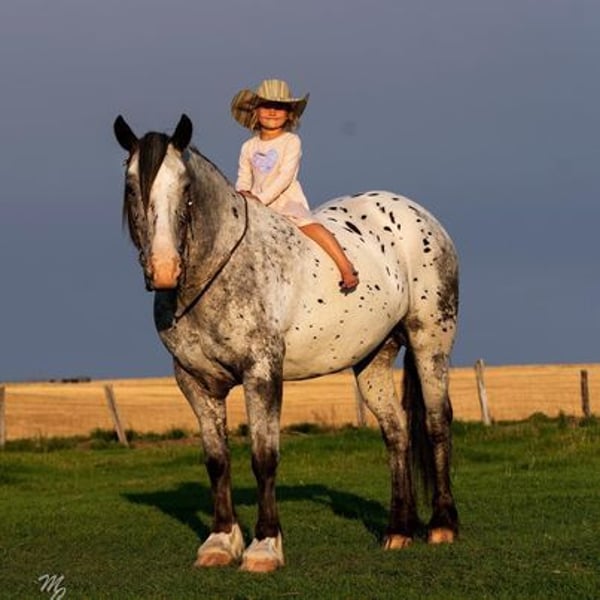 Jungle Jim is consigned by J Arrow Livestock one of the most well known and trusted names in the business. Jungle sells with a 30 Day Guarantee(call us for details). To give you some background info on Jungle Jim we originally sold him in February of 2023 at the Cowgirls Cadillacs sale in Wickenburg Arizona, to a wonderful lady who has enjoyed him to the fullest and given him the best home. Jungle Jim has never made a mistake! But as life does take some sad turns, this lady’s husband was diagnosed with terminal cancer and we have been asked to find Jungle Jim his new loving forever home. Take a look at Jungle Jim! I’ll bet your neighbor won’t have one like him or for them matter I bet they haven’t ever seen one like him! Jungle is a 2016 model registered Spotted Gypsy Vanner Cross Gelding standing 15.2hh and he is Kind, Gentle, Intelligent, Patient, and Charismatic. When I try to find the words to describe Jungle Jim those are the first that come to mind. It may seem like I am describing one of my best buddies and that is exactly what I am doing! Jungle has been my go-to horse for the last three years. Jungle is the best partner to have in any situation. If you are in need of a steady, sure footed mountain guide, he is your guy. If you are in need of someone to watch your young kid, he is your guy. If you want to stroll down main-street during a crazy parade, he is your guy. If you want to lope the most beautiful circles, execute a fancy stop or turn around, you guessed it; he is your guy. Jungle lopes around like a quarter horse and hits the ground very softly. He is very soft in the bridle.