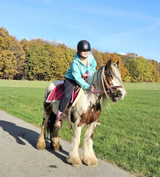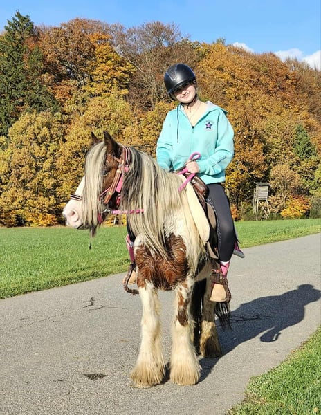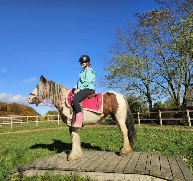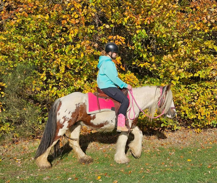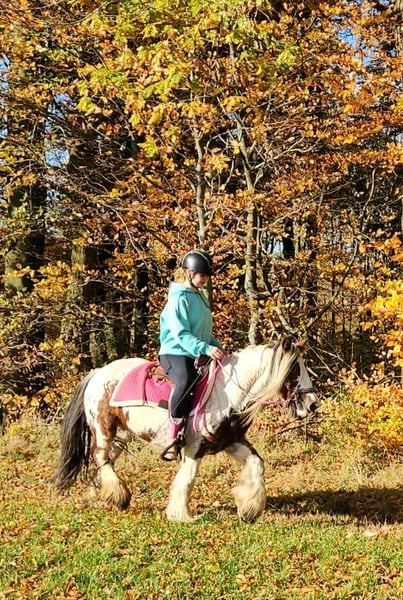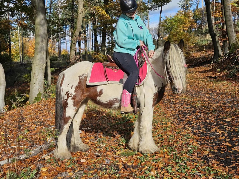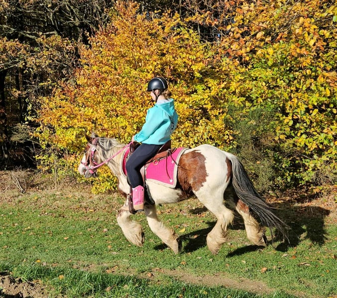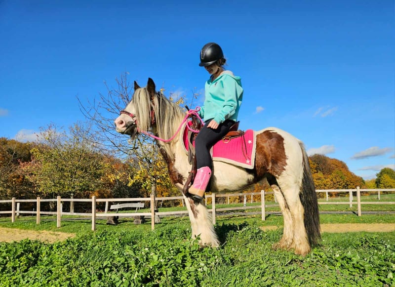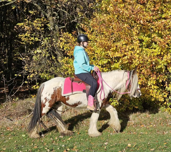 Tinker Mare in Beautiful Color Mare for leisure riding and trail riding* BABY BELL *Age*: 9 years, ridden *Height*: approximately 14.1 hh (1.44 m) *Equipment*: E-pass, microchip, and health certificate available *Price*: €4,900 A lovely mare that is ideally suited for trail and outdoor riding. She is a versatile leisure horse, well-suited for both English and Western riding disciplines. She has a calm, balanced temperament and feels comfortable in a herd but is also well-behaved in a stable. ### *What makes her special:* - Accustomed to herd and pasture turnout, stable confinement is no problem - Perfect for leisure and trail riders - Very even-tempered and easy to handle *Interested?* Please call us at *0171-4001968* (available daily from 8 a.m. to 8 p.m.). *No emails or WhatsApp messages, please—only calls!* *Additional information:* - Accessories and transport can be organized at favorable rates - Our farm shop offers a small selection of used Western saddles - *Installment payments are not available.* *Customer service:* - Each buyer receives a *three-month exchange guarantee.* - A trial ride at our facility is possible so you can get to know your dream horse. For €35, you can ride, be led, go for a walk, or more. Upon request, you can also test a second horse for €25. This amount will be deducted from the purchase price if you buy a horse on the same day. *Special features:* - Immediate pickup with a horse trailer grants you a *discount of €100.* - We complete the sale with a transparent trial ride to ensure it’s the right horse for you. *Legal notice:* - We are the sole and unrestricted owners of the images; image rights are held by us. *Reproduction of images by third parties is prohibited.* - Please note that this is a living animal. Our descriptions are based on the impressions of the caretaker and do not constitute guaranteed properties. - Listings are removed immediately once the horse is sold. *Interested?* Please call us at *0171-4001968* (available daily from 8 a.m. to 8 p.m.). *No emails or WhatsApp messages, please—only calls!*