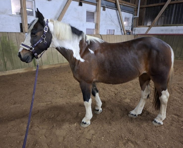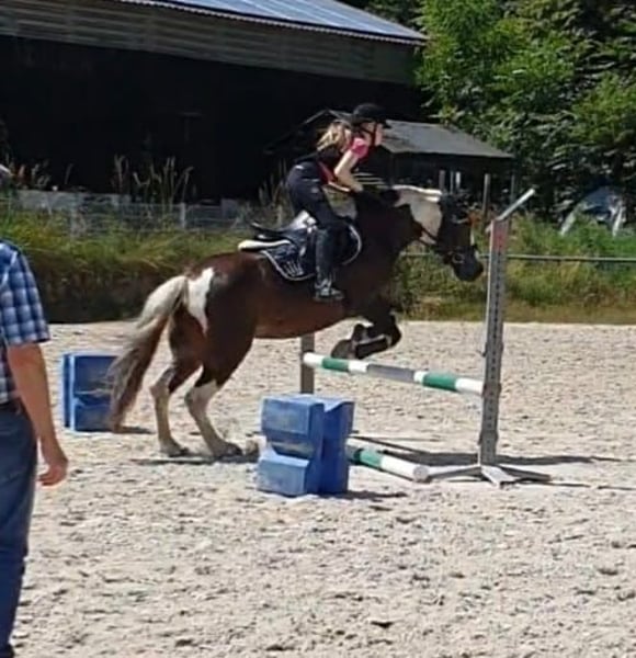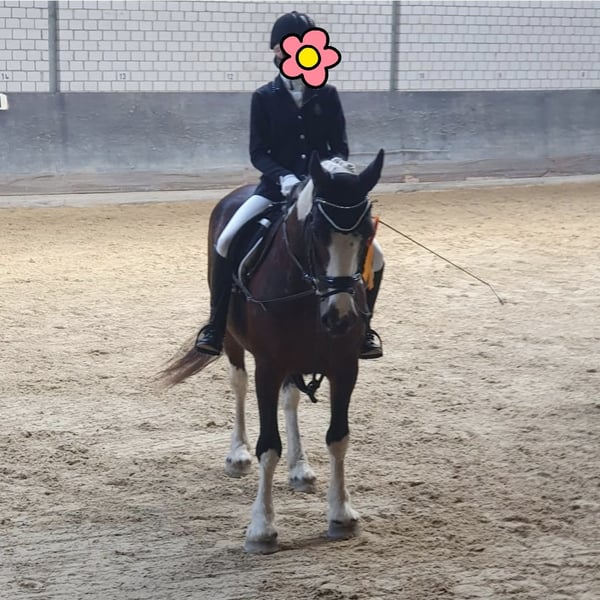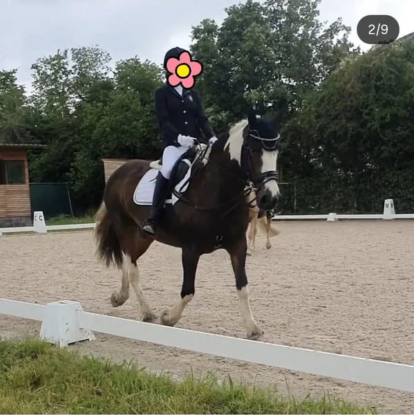 Sehr schweren Herzens müssen wir uns leider wegen privaten Veränderungen von unserer Sport-Tinker-Mix (Irish Sport Horse)Ponystute trennen. Wir haben sie im Dezember 2017 ende 2jährig gekauft (sie kam direkt aus Irland wo sie geboren wurde) und seither war sie nur in unserem Besitz. Wir haben sie ersteinmal wachsen lassen und dann behutsam und über langem Zeitraum über Bodenarbeit angelernt. Als sie soweit war haben wir selbst angefangen einzureiten, wobei sie sich immer lernwillig und lieb gezeigt hat. Als die "Basics" soweit gesessen haben, haben wir sie umgestellt damit sie, zusammen mit mit meiner Tochter, über private Reitstunden weiter über Trainer ausgebildet werden konnte. Mittlerweile ist sie auf einem sehr guten E-Niveau (über Winter und wegen Zeitmangel hatte sie jetzt Pause) und lief 3 Jahre auch auf diversen Tunieren mit (Rwb ST, Rwb STG, Dressurreiter-Wb, Pony-Führügel, Springreiter-Wb, GHP) und wir durften viele Schleifen und 1 Pokal mit ihr sammeln. Sie springt auch gerne, müsste da aber über Training gefördert werden. Ich selbst hatte mit ihr Reitstunden an Longe und Freireiten angeboten, wo sie sich auch immer lieb zeigte. Von daher würde ich sie auch als Familienpony sehen. Wir suchen für sie wirklich ein Bestplatz...sie wird weder an einen Händler gegeben noch für einen reinen Schulbetrieb! Sie sollte auch nicht das ganze Jahr über an jedem Wochenende auf Turniere laufen, wir waren nur immer in einem gewissen Umkreis unterwegs und hatten immer geschaut das es nicht zu viel für sie wird. Sie ist ein wirklich tolles Pony das viele Sachen ganz brav mitmacht. In dem angebotenen Preis wurde folgendes berücksichtigt: Sie hat ein leichtes Sommerekzem (Kriebelmücken), welches wir mit einer UV-Decke und täglichem einreiben mit Seborin/Heilerde über die Sommermonate gut abgedeckt bekommen haben (sie hat es nur an der schwarzen Stelle in der Mähne und am Bauch gejuckt) und sie getreidefreies Müsli bekommt. Zum zweiten hat sie über die Frühjahr/Sommermonate auch mal allergischen Husten, heisst, staubarmes Heu ist ein MUSS und Späne sind von Vorteil. Wir haben sie in der Zeit öfter inhaliert und kamen damit gut hin. Auch ihr komplettes Zubehör wie Sattel, Trense, Decken,...sind in dem Preis mit enthalten. Sie kennt Paddockbox und tagsüber Paddock/nachts Box. Eine Offenstalhaltung haben wir noch nicht gehabt, ich vermute aber in einer grösseren Herde fühlt sie sich nicht allzuwohl, da sie rangniedrig ist und vor allem Nachts ihre Ruhe haben will bzw braucht. Ich denke das waren ersteinmal die wichtigsten Informationen...Fragen dürfen gerne gestellt werden ☺️