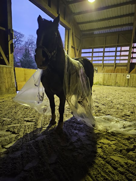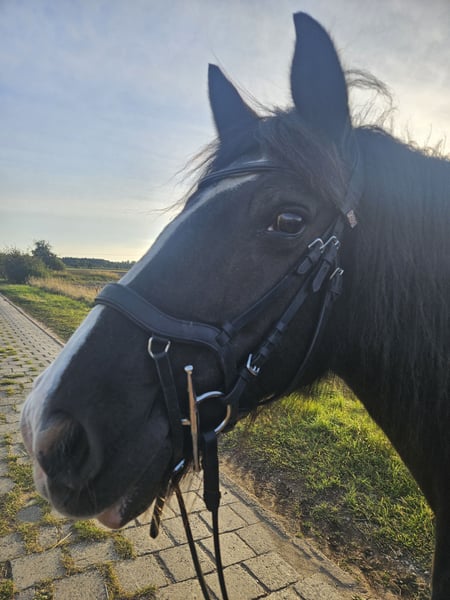 Czasami życie potoczy się inaczej, niż pierwotnie planowano, i trzeba podjąć decyzję. Poszukuję nowego domu dla mojej 13-letniej, około 1,45 m wysokiej klaczy tinkerskiej "Kinga". Typ tinkerski, nieco uparta, ale nigdy poważnie złośliwa. Jeździłam na niej rekreacyjnie, obecnie nie ma siodła, ponieważ wolę jeździć z podkładką. Na zewnątrz jest nieco czujna i dość napięta, dlatego zawsze wychodziłam z nią na spacer w towarzystwie co najmniej jednej osoby. Jest uległa, ale chciałam jej oszczędzić stresu. W stadzie jest bardzo nisko w hierarchii i unika konfliktów. Bez problemu integrowała się w nowych stajniach. Najlepiej czuje się na padoku, nie polecam jej trzymania w boksie, ponieważ wtedy chodzi w kółko, aż ją "uwolnię". Zna traktory, dzieci, kury, psy, koty i inne zwierzęta gospodarskie. Bez problemu można ją załadować i rozładować. Jest świetna u kowala, choć nie podnosi sama tylnej nogi, więc wymaga trochę siły przy jej podnoszeniu. Z charakteru jest spokojna i powściągliwa, ale od czasu do czasu potrzebuje stanowczej, ale pełnej miłości ręki, szczególnie po dłuższym postoju. Uwielbia być czyszczona i pielęgnowana. Charakterystyczną cechą Kingi jest to, że ma tylko jedno oko. Prawe oko zostało całkowicie usunięte, ale nigdy nie miała z tym problemów z oczodołem. Dobrze sobie z tym radzi i nauczyła się polegać na innych zmysłach. Jak wspomniałam wyżej, podczas jazdy solo jest trochę niepewna. Nie wiem, dlaczego usunięto jej oko. Kiedy kupiłam ją w 2019 roku, oczodół był już "pusty" i całkowicie zagojony. Sprzedawca nie mógł podać przyczyny. To nie jest sprzedaż pilna, zależy mi na pełnej szczerości i przejrzystości. Cena do negocjacji, jeśli wszystko będzie odpowiednie. Kinga ma typowe dla rasy problemy, takie jak CPL i Raspe. To wymaga dużo opieki i należy to mieć na uwadze. Im mniej błota, tym lepiej. Ponadto najlepiej, aby nie była cały czas na pastwisku, ponieważ jej metabolizm na to źle reaguje i szybko tyje. Szukałabym osoby z doświadczeniem w pracy z tinkerskimi końmi. Proszę, nie kontaktować się w sprawie, jeśli nie jest się poważnie zainteresowanym. Hodowcy, początkujący jeźdźcy i ośrodki szkoleniowe – nie, dziękuję! Idealnie sprawdziłaby się jako koń terapeutyczny lub do zaprzęgu dwukonnego, gdzie nie chodzi o jazdę. Chcę, aby była kochana za swoje usposobienie, a nie kończyła jako trofeum. Lokalizacja: Büchten Proszę o wiadomości wyłącznie w przypadku poważnego zainteresowania.