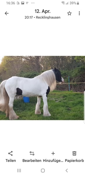 Hello everyone, I am acting on behalf of the owner. Tinker mare, 17 years old. A very beautiful, child-friendly Tinker mare. She is 1.50 meters tall, safe over fences, and free of eczema and mud fever. Farrier and veterinarian visits are no problem. She is regularly dewormed and her teeth have been recently checked. She is being sold as a rideable companion horse into caring hands. Name: Darcy’s Barbara Born: 2008 Price: €1,700 VB Location: Recklinghausen Please contact me by phone only. You can reach me daily at: 0176 64818606