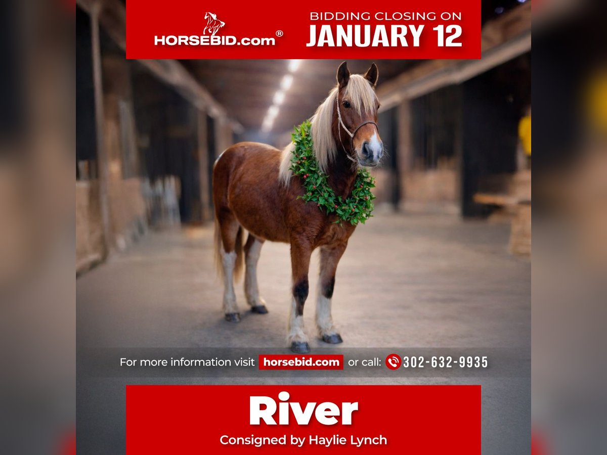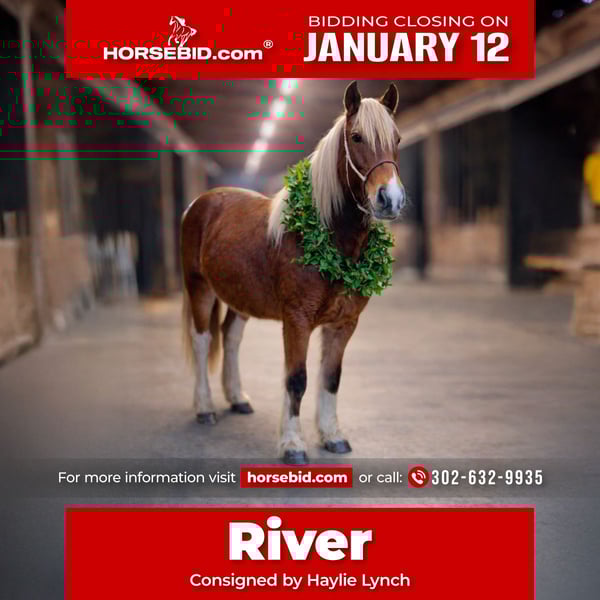 ♦️𝐍𝐄𝐖 𝐘𝐄𝐀𝐑'𝐒 𝑬𝒙𝒕𝒓𝒂𝒗𝒂𝒈𝒂𝒏𝒛𝒂♦️ Happening now thru MONDAY | JANUARY 12th - Available EXCLUSIVELY on HorseBid's website! For more details and to register visit: www.Horsebid.com CONSIGNOR CONTACT: Haylie Lynch 302-632-9935 LOCATION: Queenstown, MD BREED: Gypsy Vanner Halflinger cross REGISTERED: No REGISTERED NAME: River COLOR: Tri Tobiano HEIGHT: 14 AGE: 2 GENDER: Mare Coming 2 yr old that has had extensive ground work and desensitizing. She has been saddled and ground work with traps and flags, water, umbrellas and everything under the sun with no care. Takes new things with ease. Loads, ties and baths wonderful. Hauls in trailers like a dream. First one to meet you at the gate. Gets along in a mixed herd. Possibilities are endless. Trail riding , hunter jumper, driving or obstacles. A great youth project. Easy and willing. Perfect size with a short and stocky build.