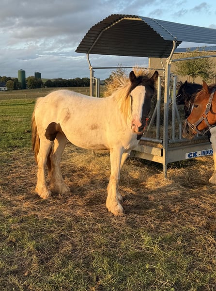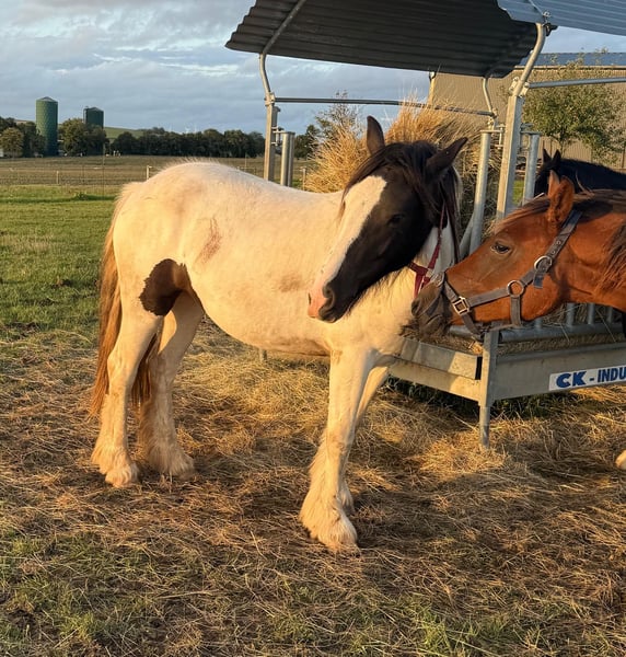Zum Verkauf steht eine super schicke 2 Jahre alte Tinker Stute mit gutem Gebäude und schöner Bewegung. Sie wird etwa 147cm groß Sie ist halfterführig und brav, lebt robust in der Herde und ist komplett gesund. Hufen sind frisch gemacht und ein Pass ist auch vorhanden. Wer ein tolles Pferd zum selber Ausbilden sucht, ist bei ihr genau richtig. Krankheiten oder Allergien sind nicht bekannt. Eine AKU darf gerne gemacht werden. Gerne anrufen oder eine Nachricht senden 0157 36803742 Alle Angaben ohne Gewähr, Preisänderungen vorbehalten, Transport möglich, Onlinekauf möglich