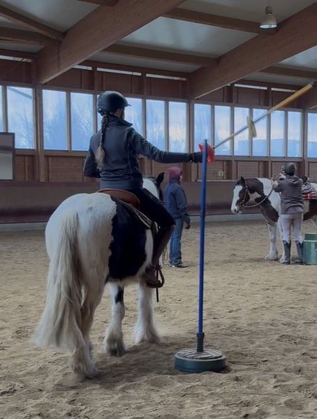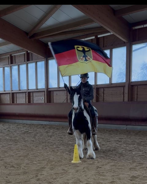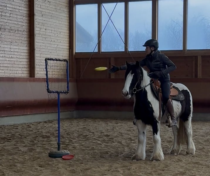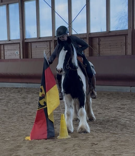 Sie suchen das perfekte, ruhige Freizeitpferd für ihre Familie und Kinder und genau so ein Pferd ist diese besondere Irish Cob Stute, geb. 2022 und kräftig gebaut, zuverlässig, gelassen und einfach zum Wohlfühlen. Durch ihr stabiles Exterieur ist sie auch für Erwachsene sehr gut geeignet. Die Reiterin auf den Bildern ist 1,78 m groß. Besonders Reitanfänger, die ein Pferd brauchen, das Vertrauen schenkt und Ruhe ausstrahlt, fühlen sich auf ihr besonders wohl. ✅ Eckdaten & Highlights • Irish Cob Stute, Jahrgang 2022 • ca. 1,43 m, kräftig, kompakt und kurz im Rücken, ein echter Gewichtsträger • in der Herde aufgewachsen, sehr gut sozialisiert, dadurch megalieb mit ihren Artgenossen • absolut brav im Umgang, an der Hand sowie unter dem Sattel • cool im Kopf, unerschrocken und vermittelt Sicherheit, Geländesicher • bequem zu sitzen, angenehm für entspannte Ausritte • schmiedefromm & verladefromm • ekzemfrei • kleine AKU ohne Befund ✅ Für wen ist sie perfekt? Für alle, die ein braves, verlässliches Freizeitpferd suchen, zum Aufsitzen, Losreiten und Wohlfühlen. Ob gemütliche Ausritte in der Natur, Familienpferd oder ein Pferd, das durch seinen Charakter auch für therapeutische Arbeit geeignet ist. Diese Stute bringt die besten Voraussetzungen mit. Ein echtes Herzenspferd, das man sich als Reitanfänger wünscht. Ruhig, freundlich, unkompliziert, ein Traumpferd für die schönsten Momente im Sattel. Bei ernsthaftem Interesse freuen wir uns über eine Nachricht, gerne mit kurzer Vorstellung, für wen das Pferd gedacht ist. TEL.: 01709343872 Für einen Besuchstermin mit Vorreiten und Probereiten berechnen wir 40€, die beim Kauf des Pferdes selbstverständlich erstattet werden. Hierfür bitten wir Sie um Verständnis.