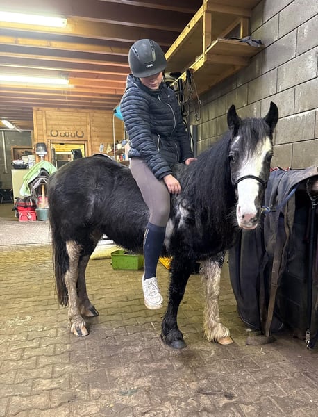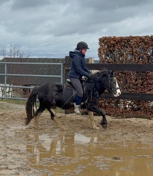 Zum Verkauf steht eine 6 Jahre alte, etwa 128cm große Tinker Mix Ponystute. Sie ist etwa sportlicher als ein reiner Tinker und arbeitet sehr gut unter dem Sattel mit. Sie zeigt keine Unarten und geht brav alle Gangarten auf dem Reitplatz. Sie springt auch gerne und schafft im Freispringen locker 60cm. Im Gelände war sie auch schon und zeigt sich bisher cool und gelassen. Auch im Umgang ist sie absolut lieb und umgänglich. Sie lebt in der gemischten Gruppe im Offenstall und ist sehr verträglich. Krankheiten oder Allergien sind nicht bekannt. Eine AKU darf gerne gemacht werden. Für das Probereiten, Vorreiten oder anderes Ausprobieren des Pferdes berechnen wir 35€. Beim Kauf wird dies gutgeschrieben. Gerne anrufen oder eine Nachricht senden 0157 36803742 Alle Angaben ohne Gewähr, Preisänderungen vorbehalten, Transport möglich, Onlinekauf möglich