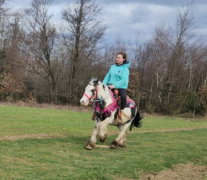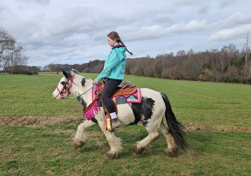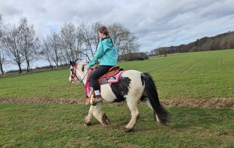 Tinker Stute – brav, gelassen & vielseitig einsetzbar, auch für Therapie geeignet LEA-SUSI Alter: 5 Jahre Stockmaß: ca. 1,35 m Preis: 4900,- AKU: vorhanden ✨ Beschreibung: Diese charmante Tinker Stute ist ein richtig nettes Pony, das nahezu jeden Spaß mitmacht. Sie überzeugt durch ihr freundliches, ausgeglichenes Wesen und zeigt sich im täglichen Umgang brav, unkompliziert und menschenbezogen. Unter dem Sattel ist sie nett geritten, kooperativ und angenehm zu reiten. Ob auf dem Platz oder im Gelände – sie zeigt sich gelassen und macht ihrem Reiter einfach Freude. Durch ihre ruhige, geduldige Art ist sie sehr zuverlässig und lässt sich auch in neuen Situationen nicht aus der Ruhe bringen. Perfekt für: Kinder, Jugendliche oder kleinere Erwachsene, die ein liebes, verlässliches und vielseitiges Pony suchen. Ideal für Freizeit, Ausritte, Bodenarbeit und alles, was gemeinsam Spaß macht. Aufgrund ihres ausgeglichenen Charakters und ihrer großen Gelassenheit ist sie auch interessant für den Einsatz im therapeutischen Reiten, da sie wirklich brav ist und vieles geduldig mitmacht. Unsere Pferde werden regelmäßig: – entwurmt – vom Schmied betreut – osteopathisch kontrolliert Transport auf Wunsch günstig organisierbar Anfragen bitte ausschließlich telefonisch: 0171 – 4001968 Erreichbar täglich von 8–20 Uhr ⚠️ Keine E-Mail oder WhatsApp ⚠️ Alle Angaben ohne Gewähr