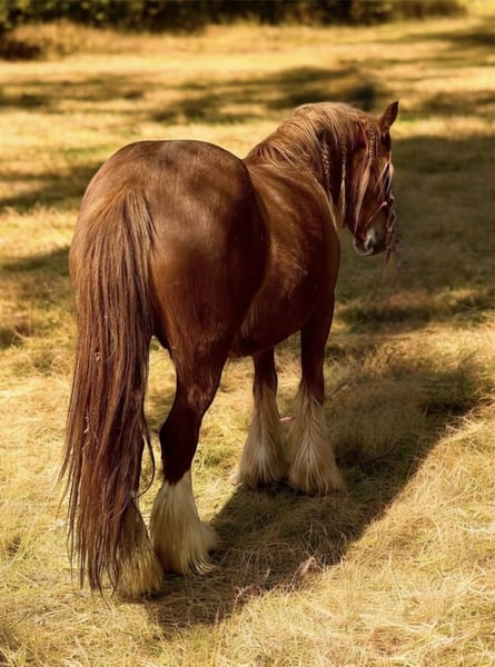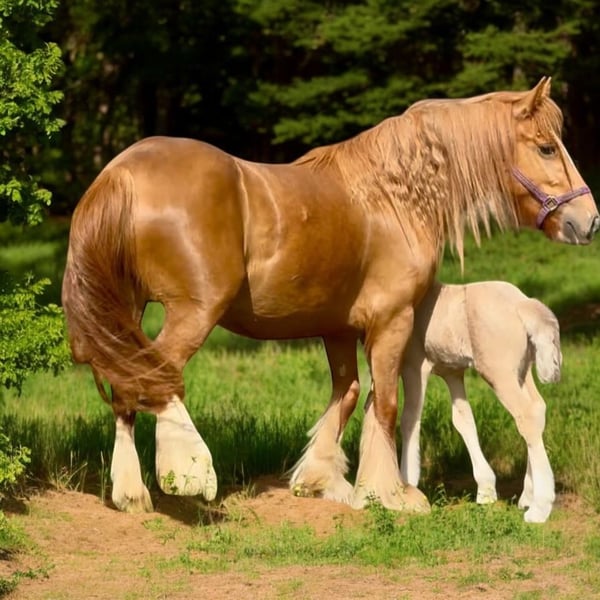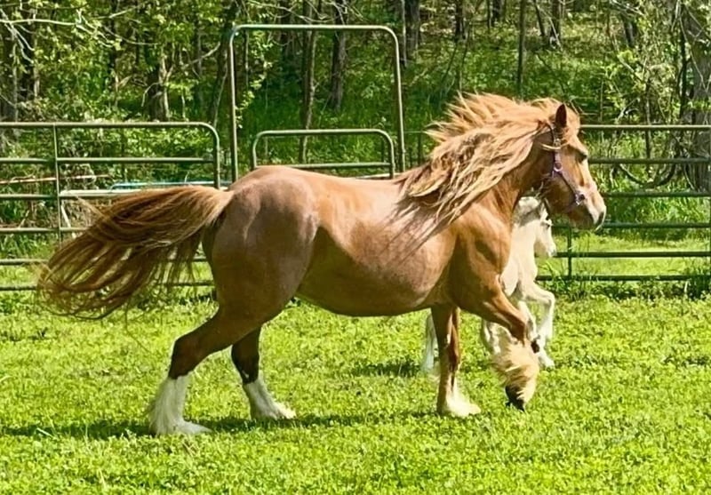 "AVAILABLE ON ONLINE HORSE AUCTION AT www.MagicHorseAuction.com BIDDING OPEN NOW thru TUESDAY | JANUARY 20TH! BUY IT NOW AVAILABLE! *Final price will be determined on auction site* CONSIGNOR CONTACT INFO: Debbie Thorsen #314-368-4000 LOCATION: DeSoto, MO 63020" "Peaches is a tender-hearted 13.2 hand 5 year old red-headed Gypsy, with a wealth of hidden color genetics. She carries red of course, but also silver, agouti and pearl. ee nZ Aa nPrl nn. Peaches has had a rough start in life, if you want her story, you can message me privately. She has given us this gorgeous silver buckskin filly, but she is not being presented as a brood mare. (She came to us pregnant) Our hopes are to see her be someone's heart horse, as she is longing for that connection with a human. However she has been a great mom, unbelievably gentle and doting on her baby. She has had three weeks training under saddle, but is still very green. She's back in training now, first week of January 2026, where she will stay for a few months, unless I find someone for her who wants to do the training or handle the training themselves. Peaches carries one genetic marker of pssm1, which is not consequential in the Gypsy breed. She requires no special diet and has no symptoms whatsoever. This marker can adversely affect stock horses (Quarter horses) but generally has no effects on the Gypsy horse. I've personally had several with the marker, but never once did any of them have an issue. Peaches is out of Bellissima Farms Applejacks , by Bellissima Farms Rugged Cross. ~~~CONSIGNER SPECIAL ADDITIVE~ her purchase could include a breeding to my registered gypsy stallion before she gets picked up, or anytime down the road and we do ship fresh or frozen, as well as live cover. The breeding would be guaranteed to produce a buckskin or a Palomino. ~~ PHOTO OF STALLION ATTACHED "