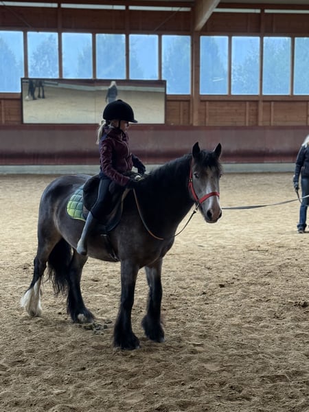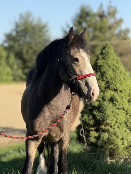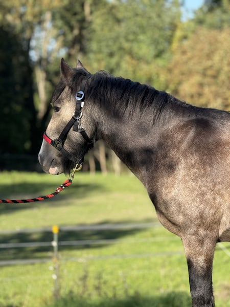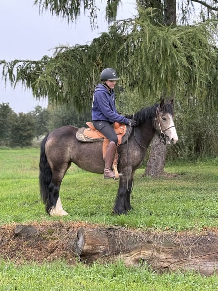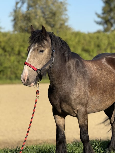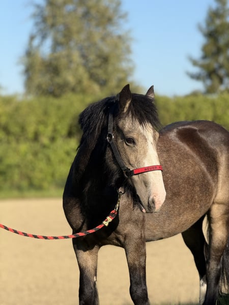 Traumpferd für Herzensmenschen! 5-jährige Irish Cob Stute in der seltenen Farbe „DUN“ zu verkaufen 💛 Mit ihren ca. 1,40 m Stockmaß ist sie ein echter Hingucker. Kompakt, kräftig gebaut, deckt sie auch größere Reiter*innen wunderbar ab. Die Reiterin auf dem ersten Bild ist 1,77 m groß und wiegt 68 kg. Die Stute ist sehr rittig, geländesicher, schmiede- und verladefromm und zeigt sich immer von ihrer besten Seite. Sie ist im Herdenverband aufgewachsen, läuft barhuf, ist ekzemfrei und sowohl Offenstall als auch Box mit Paddock gewohnt. Sie liebt Kinder, ist superlieb im Umgang und immer bemüht, ihrem Menschen alles recht zu machen. ❤️ Dank ihres ruhigen und ausgeglichenen Charakters vermittelt sie auch unsicheren Reiter*innen ein sicheres Gefühl – einfach ein Pferd zum Verlieben! ✔️ Inklusive kleiner AKU ohne Befund ✔️ Mit Equidenpass ✔️ Entwurmt und gesund 🐎 Eine liebenswerte Partnerin fürs Gelände, Freizeit oder Familie, bereit, mit dir durchs Leben zu gehen! 👉 Interesse geweckt? Dann melde dich gerne für weitere Infos oder zum Probereiten telefonisch unter 0049(0)1709343872 Für einen Besuchstermin mit Probereiten berechnen wir 35€, jedes weitere Pferd 20€. Hierfür bitten wir Sie um Verständnis. Bei Kauf des Pferdes wird ihnen die Gebühr erstattet.