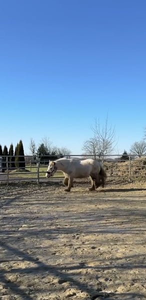 Tinkerstute, 4 Jahre, wird im April 5 Stockmaß aktuell ca. 140 cm mit holländischem Pass. Aus persönlichen Gründen sucht unsere Tinkerstute ein passendes neues Zuhause. • aktuell ca. 140 cm (noch im Wachstum) • kräftiger, kompakter Typ • Kennt Offenstall und 24/7 Weidehaltung, sowie nachts Box tagsüber draußen • regelmäßig geimpft und entwurmt Osteopath war im Januar erst da. Sie kennt: • Longieren und Doppellonge(Roundpen & Platz) • Gelassenheitsarbeit • Spaziergänge im Gelände • Platzarbeit • Kutschenausbildung (1- & 2-spännig) Wurde laut Vorbesitzerin schon im Abteilungsreitunterricht eingesetzt. Sie ist aufmerksam, intelligent und arbeitet fein mit, wenn sie klar geführt wird. Im Gelände zeigt sie sich grundsätzlich gut händelbar. Sie ist kein Anfänger oder Kinderpferd. Obwohl sie von der Vorbesitzerin ( laut ihrer Aussage) als Therapiepferd ausgebildet und auch einsetzt wurde, sehe ich sie in dem Bereich aktuell nicht. Sie zeigte bei mir in zwei Situationen Abwehrverhalten im Handling (insbesondere im Bereich Hinterhand sowie beim Anlegen von Ausrüstung) und benötigt daher einen ruhigen, erfahrenen und konsequenten Menschen. Hierzu möchte ich unbedingt noch erwähnen, dass sie einen ganz tollen und ruhigen Grundcharakter hat. Unser Trainer hat sie aktuell 1x die Woche im Training vom Boden aus und zur weiteren Desensibilisierung. Ein Probereiten ist aktuell aufgrund fehlenden Equipments nicht möglich. Spazieren gehen, Longieren und Kennenlernen sind selbstverständlich möglich. Sie wird ausschließlich an erfahrene Menschen verkauft, die den Umgang mit einem Pferd mit Ruhe und Geduld bevorzugen.