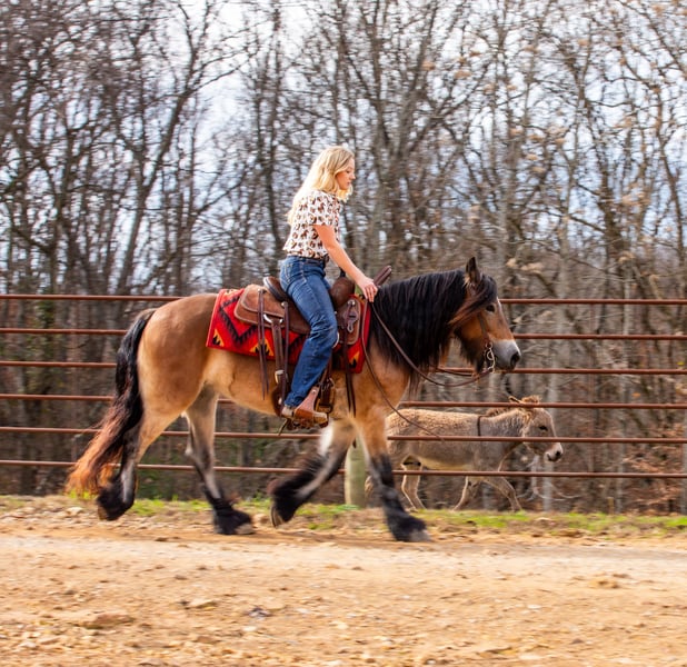 🎄𝐓𝐇𝐄 𝑯𝒐𝒍𝒊𝒅𝒂𝒚 𝐂𝐋𝐀𝐒𝐒𝐈𝐂🎄 Happening now thru MONDAY | DECEMBER 15th - Available EXCLUSIVELY on HorseBid's website! For more details and to register visit: www.Horsebid.com CONSIGNOR CONTACT: J&S Livestock 931-242-7226 LOCATION: Santa Fe, TN BREED: Gypsy Vanner REGISTERED: Yes REGISTERED NAME: Magic’s Dancin Dakota COLOR: Bay HEIGHT: 14.1 AGE: 5 GENDER: Mare “Magic’s Dancin Dakota” If your looking for that safe, steady, and dependable partner to give you or your kids the confidence needed to be able to truly enjoy riding, and see how incredibly fun it is to be horseback- then look no further than Dakota. Standing 14.1hh, making her that perfect height for kids, and even adults. She is built correctly- thick, sturdy and good feet. Not to mention that beautiful flowing mane and tail. Most of all, she is patient with all sorts of riders and her goal is to take care of you. Dakota is extremely user friendly. Even with someone having no experience riding, she sure makes it easy to learn and have fun while doing it! You truly don’t have to worry about giving her the wrong signal, she will stay safe and steady for you to learn and grow with. When it comes to ground manners, Dakota sure does have excellent ones. She loves to be played with and pampered on- from brushing, bathing, to scratches, to braiding her mane and tail all day long, she will stand perfectly still and soak up all the attention you could possibly give her. Shes super easy to saddle and trailer as well. Keep her stalled or turned out, she’s happy with either. You can go out and catch her anywhere she stands, making it hassle free. She will be the same horse every single day- you can leave her sitting for as long as you’d like and you can guarantee she’ll ride right off without any nonsense. When it comes to the trails, Dakota has you covered. When I describe her the phrase that always comes to mind is, “more whoa than go”. This mare is happily content walking along the trails, farm , etc. as long as you’ll let her, but if you desire just ask for a faster speed, and she will do as asked. She will go right into a nice little trot, and pick right up into a lope. Along the trails she will cross water easily, safely take you over fallen down trees, and up and down rocky inclines. She isnt going to spook at any unexpected events that might occur. You can also safely ride her out alone without any worry, she doesn’t have to be rode in a group for you to be able to enjoy a nice, peaceful ride for some relaxation. However, if you prefer to ride her with a group she will do just as good. I can confidently say i feel absolutely anyone can get along with Dakota, and truly love her for the rest of her life. She’s that perfect family / beginner friendly style horse that’s truly hard to find at her age, with such perfect qualities. Dakota has a recent PPE which she passed with flying colors! She has zero bad habits and is sound and sane. For any further information feel free to reach out at anytime- Bailey 931-242-7226