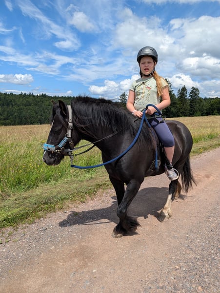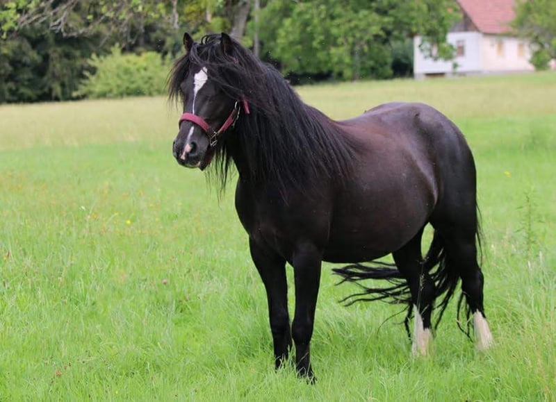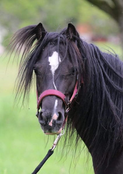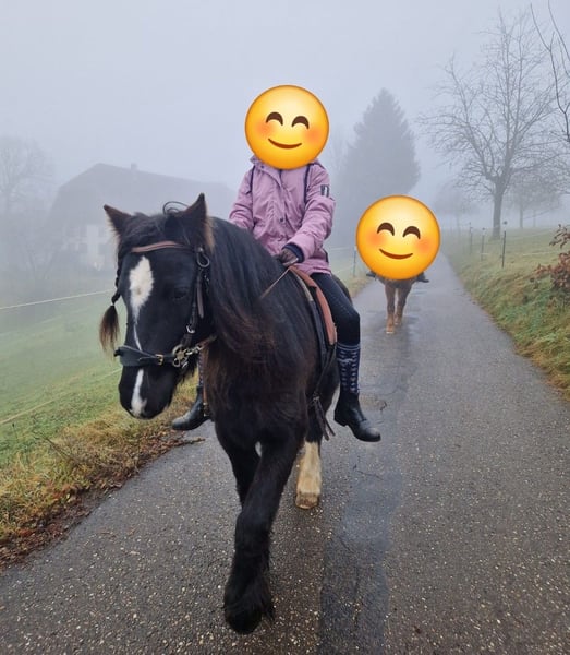 Bella ist eine bildhübsche Tinkerponystute, geb.2019, Stm 128 cm, angeritten, sehr gut longiert und absolut schmiede- und verladefromm. Zähne, Entwurmung, Impfung regelmässig gemacht. Bella geht als Handpferd ins Gelände, kennt Reitergewicht in allen Gangarten, steht jedoch erst am Anfang ihrer Ausbildung und muss weiter gefordert und gefördert werden. Sie ist arbeitswillig, gelehrig und intelligent, kann aber aufgrund ihres Ausbildungsstandes noch nicht als reines Kinderpony abgegeben werden. Bella braucht eine klare und konsequente Führung, dann ist sie ein super Pony. Da sie einen schönen Trab hat und unerschrocken im Strassenverkehr, können wir sie uns auch gut vor der Kutsche vorstellen. Sie kann mit allem Zubehör erworben werden. In der Herde ist sie absolut lieb und verträglich.