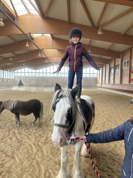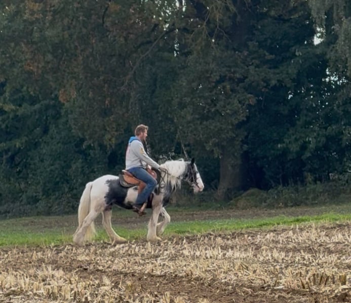 Traumpferd mit Herz – Bildhübsche Irish Cob Stute Du suchst nicht einfach ein Pferd? Du suchst dein Seelenpferd? Dann könnte diese liebe und hübsche 7 jährige Irish Cob Stute genau die richtige Begleiterin für dich sein. Mit ihrer hübschen Farbgebung ist sie nicht nur ein absoluter Eyecatcher sondern überzeugt auch mit einem charmanten, liebevollen Wesen, das direkt ins Herz geht. Sie bringt eine beeindruckende Ruhe mit, die sofort Vertrauen schafft, ob auf dem Platz, in der Halle oder im Gelände. Ein echtes Verlasspferd, das mit ihrer entspannten Art jeden Tag schöner macht. Sie liebt Kinder und ist mit ihnen besonders umsichtig. Unsicheren Reiter/ innen gibt die durch ihre entspannte Art ein geborgenes und sicheres Gefühl. Eckdaten & Highlights: • Ca. 1,44 m , kräftig, kompakt, stabil & bequem • Super brav, egal ob Gelände, Platz oder Halle, sicher im Straßenverkehr • Verlade- und schmiedefromm • Kennt Offenstall, Box mit Paddock & Herdenhaltung • Chillige Persönlichkeit, dabei zuwendungsliebend & loyal • Inkl. kleine AKU ohne Befund Ein Pferd, das nicht laut, sondern leise begeistert. Das nicht aufdrängt, sondern mit Ruhe gewinnt. Man verliebt sich nicht nur in ihr Aussehen sondern auch in das sichere Gefühl, das sie einem gibt. In eigener Sache: Professionelle Ausbildung und artgerechte Haltung – Qualität hat ihren Preis Die Ausbildung eines Pferdes erfordert nicht nur Fachwissen, sondern auch viel Zeit, Geduld und Erfahrung. Als spezialisierter Zucht- und Ausbildungsbetrieb für Freizeit- und Verlasspferde legen wir größten Wert auf eine vielseitige, pferdegerechte Ausbildung, die unsere Tiere bestmöglich auf ihr zukünftiges Leben als zuverlässige Freizeitpartner vorbereitet. Unsere Pferde wachsen unter artgerechten Bedingungen mit viel Bewegungsmöglichkeiten auf, was sich positiv auf ihre physische und mentale Entwicklung auswirkt. Wir investieren in eine fundierte, nachhaltige Ausbildung, die jedem Pferd die Zeit gibt, die es braucht, um sich optimal zu entwickeln. Daher bitten wir um Verständnis, dass unsere Verkaufspreise nicht verhandelbar sind. Sie spiegeln die Qualität, Sorgfalt und den hohen Standard wider, den wir in unsere Arbeit und somit auch in ihre Sicherheit investieren. Wenn Sie Wert auf ein gut ausgebildetes und artgerecht gehaltenes Pferd legen, sind Sie bei uns richtig.