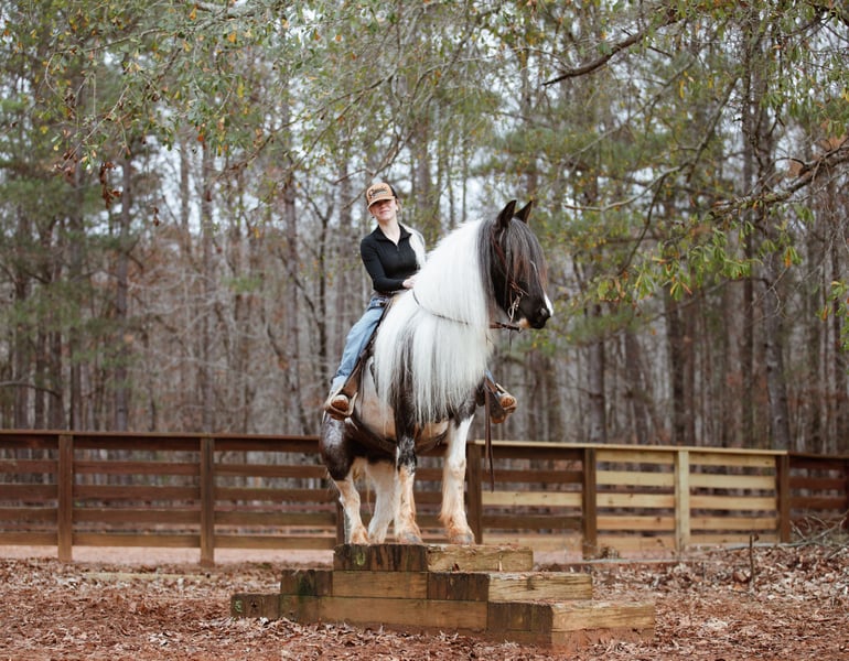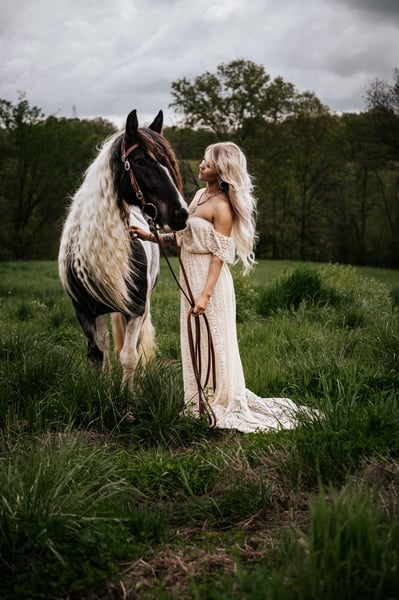 🎄𝐓𝐇𝐄 𝑯𝒐𝒍𝒊𝒅𝒂𝒚 𝐂𝐋𝐀𝐒𝐒𝐈𝐂🎄 Happening now thru MONDAY | DECEMBER 15th - Available EXCLUSIVELY on HorseBid's website! For more details and to register visit: www.Horsebid.com CONSIGNOR CONTACT: Brenna Hurt 660-676-2592 LOCATION: Rutledge, GA BREED: Gypsy Sport Horse REGISTERED: Yes REGISTERED NAME: ML FARMS LUNA COLOR: Blue Roan Tobiano HEIGHT: 14.1 AGE: 6 GENDER: Mare It is absolutely my pleasure to introduce you to the most beautiful, unique, intelligent, and sweet horse I have ever owned! Luna is a six year old, Blue Roan Tobiano, Registered Gypsy Sport Horse mare. Gosh I’m not even sure where to start honestly. Every second of having this gorgeous girl has been an absolute joy. From the day she came to me I have been absolutely enamored by her, and so has everyone else that has ever came in contact with her! She is absolutely breathtaking, kind, and so incredibly smart! “Lou” has been my personal horse all this year. I’ve taken her far and wide across many states on many adventures! From day working, gathering hundreds of head of cattle in all types of conditions, to parades, overnight trips, dragging calves, trail rides, and many days just having fun at the arena. She has been so incredibly fun to have! Everywhere we have been I have been proud to have her. Every person I meet that asks me about horses, I have eagerly shown them pictures of her and every time they simply say “wow.” Not only is she as pretty as they come, she rides like an absolute Cadillac. Luna is super soft with an easy one hand neck reign in all gaits and directions. She’s even so broke you can forget the saddle and bridle and just have fun with a neck rope if you wish! Luna has had several months of professional training variously through her life. She’s been ridden western and English and is a super fancy mover and is brave enough to cross all sorts of obstacles! Lou is also the absolute sweetest horse ever, she absolutely LOVES attention and specifically butt scratches. She will flat out catch you in the pasture for all the pets and attention she can get. Luna is super easy to handle. She’s very gentle, good to shoe, load, bathe, saddle, ect! I’ve even left her off for several months at a time and had no issues! She is super easy keeping, healthy, and 100% sound! And don’t worry.. I promise her mane isn’t too terribly hard to upkeep, and it typically stays at least at her knees! This girl has good feet and good clean legs, she is also athletic enough and has a foundation to do absolutely anything in the world with. I stand by her 100% and am going to absolutely cry when she goes.. but I am so excited to see what her future holds with her new home! If you are wanting a truly one of a kind mare that will get you noticed and be your best friend for life. Luna is your girl! Please feel free to get ahold of me with any questions or if you’d like to come see this incredible mare, I promise you will not be disappointed! I hope she goes to the absolute best home out there, because that is what she truly deserves.