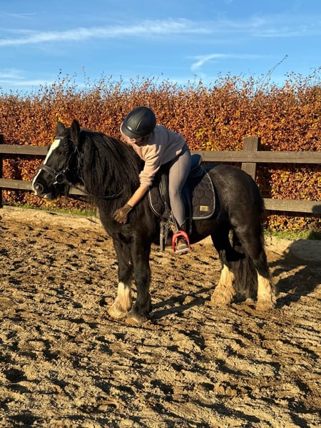 Zum Verkauf steht eine etwa 137cm große, 7 Jahre alte, kräftige Tinkerstute mit sehr gutem Gebäude und schöner Bewegung. Sie ist ein Traum im Umgang, super brav und einfach zu händeln. Kinder kennt und mag sie auch. Sie ist freizeitmäßig geritten und dabei brav und gelassen. Sie geht alle Gangarten auf dem Reitplatz und auch im Gelände. Dabei ist sie nicht schreckhaft und auch kein Rennpferd. Sie wäre bestimmt auch perfekt für eine Reitschule oder für eine Familie. Schmied und Verladen macht sie ebenfalls absolut brav mit. Sie kann robust gehalten werden und ist verträglich in der Herde. Der Behang wurde abgeschnitten, da die Stute übermäßig viel Behang hatte. Keine Mauke! Die Hufen wurden bereits frisch ausgeschnitten. Krankheiten oder Allergien sind nicht bekannt. Eine AKU darf gerne gemacht werden. Für das Probereiten, Vorreiten oder anderes Ausprobieren des Pferdes berechnen wir 35€. Beim Kauf wird dies gutgeschrieben. Gerne anrufen oder eine Nachricht senden 0157 36803742 Alle Angaben ohne Gewähr, Preisänderungen vorbehalten, Transport möglich, Onlinekauf möglich