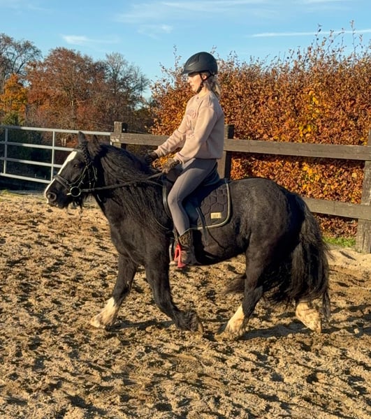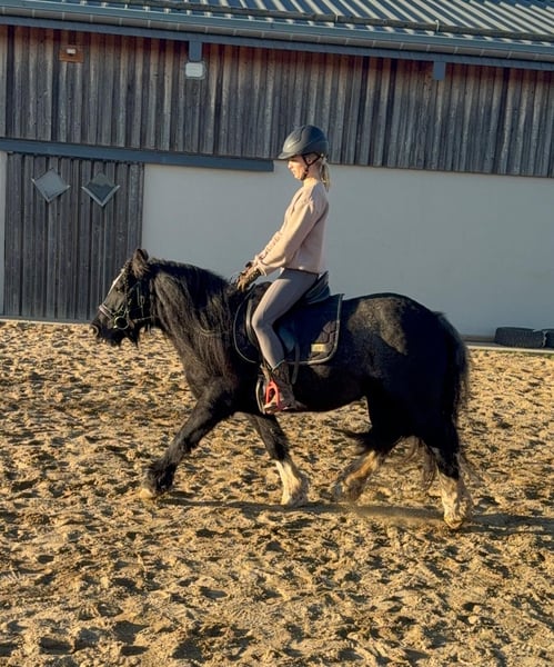 For sale is a strong 7-year-old Tinker mare standing approximately 137 cm tall, with excellent conformation and beautiful movement. She is a dream to handle, very well-behaved, and easy to manage. She also knows and likes children. She has been ridden in her leisure time and remains calm and steady. She moves comfortably in all gaits both in the arena and in the field. She is not easily spooked and is not a racehorse. She would likely be perfect for a riding school or a family. She is also absolutely manageable when it comes to farrier work and loading. She can be kept in a robust manner and is compatible with other horses in the herd. Her mane has been trimmed, as she had an excessive amount of mane. No signs of mud fever! Her hooves have already been recently trimmed. No illnesses or allergies are known. An AKU (pre-purchase examination) can be performed upon request. We charge €35 for a trial ride, pre-ride, or other testing of the horse. This amount will be credited upon purchase. Please call or send a message to 0157 36803742. All information provided is without guarantee. Price may be subject to change. Transport possible. Online purchase available.