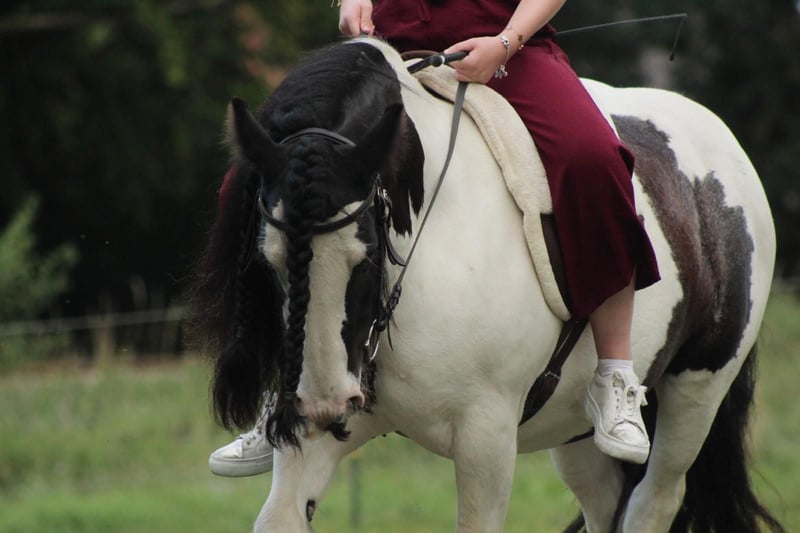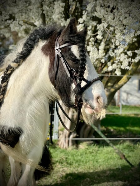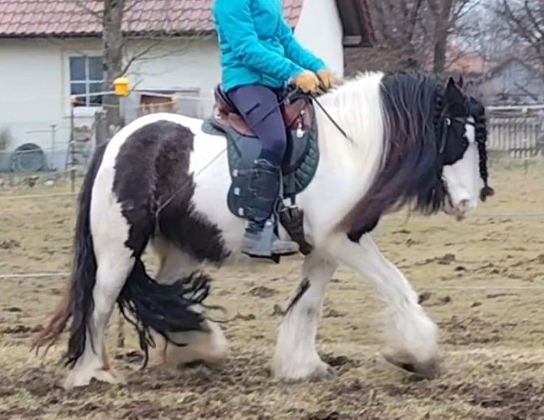 Ich verkaufe umständehalber meine Tinkerstute. Sie ist 2016 in England geboren. Ich habe sie 2020 roh gekauft und selbst ausgebildet. Sie ist geritten und wird einspännig gefahren. Ellen ist ein tolles Pony. Sie ist sehr lieb und ehrlich. Durch die schöne Scheckung und ihren tollen Behang (keine Mauke und Raspe) ist sie ein echter Blickfang. Sie ist sehr bemüht und motiviert und hat eine tolle Arbeitseinstellung. Es wäre schön, wenn ihr Potential noch weiter gefördert wird. Unter dem Sattel zeigt sie sich stets bemüht, alles richtig zu machen. Ellen ist fein zu reiten, benötigt aber einen sicheren und gefühlvollen Reiter um ihr Potenzial zu zeigen. Sie lässt sich aber auch gerne von Kindern reiten. Ellen ist definitiv ein toller Partner zum reiten und fahren. Auch am Boden zeigt sie sich immer lernwillig und ist super aufmerksam. Ellen ist geländesicher, kennt Hunde, Fahrradfahrer etc. - Rappschecke - geb. 07/2016 - keine Unarten, geländesicher, schmiedefromm (sie ist unbeschlagen) verladefromm - 1,36 Stockmaß (trägt problemlos leichtere Erwachsene) - Herdenverträglich (eher rangniedrig) - regelmäßig entwurmt & Zähne gemacht - Impfung aktuell (Tetanus) - Keine schlechten Erfahrungen, ich bin die 1. Besitzerin nach dem Züchter - komplettes passendes Zubehör kann gern zusätzlich erworben werden (auch Kutschgeschirr und Kutsche) Der Preis ist verhandelbar (Platz vor Preis) Ich gebe sie nur aufgrund meiner persönlichen Lebenssituation und schwersten Herzens ab. Mir ist wichtig, dass sie ein gutes Zuhause bekommt und mit ihrem neuen Besitzer gut zurecht kommt.
