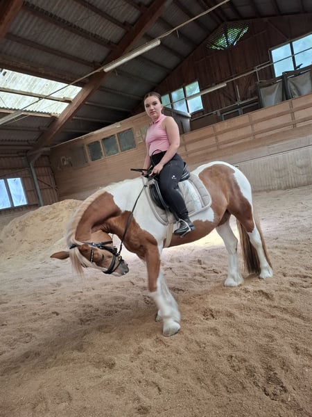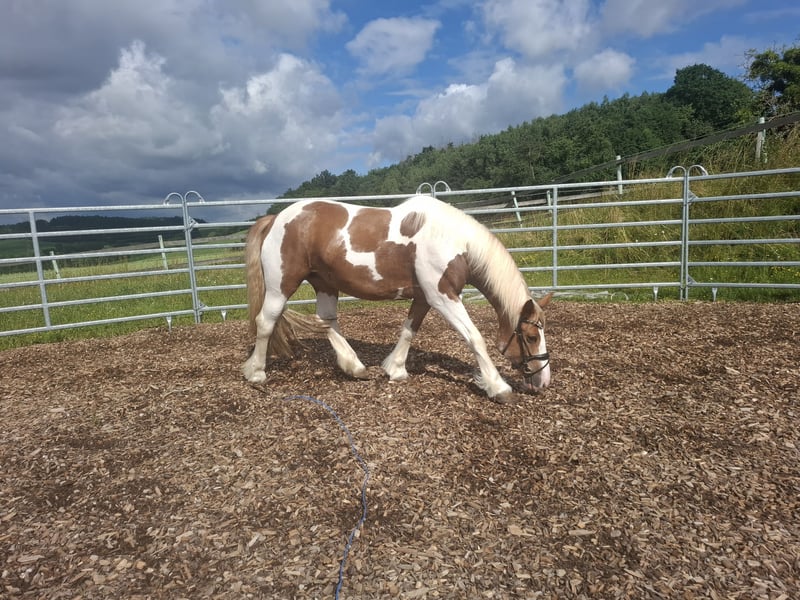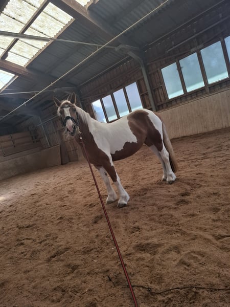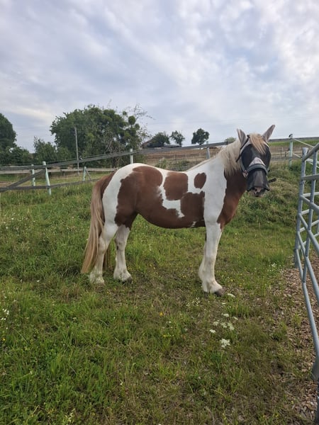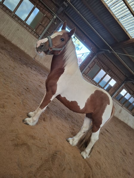 Perfect Beauty - Temperamentvolle Stute 🐎 sucht neuen Möhrchengeber Leider muss ich meine Stute Perfect Beauty aus zeitlichen Gründen verkaufen Beauty ist eine 2017 geborene Equide/Irish Tinker Warmblut Mix Stute (geb.10.07.2017)..ca 150 cm Stockmaß, Braunschecke Sie wird Englisch geritten und ist ein reines Freizeitpferd Sie ist eine temperamentvolle,sensible Stute die einen erfahrenen Reiter(in) braucht. 👉 Kein Anfängerpferd Bei Plötzlichen Geräuschen oder ungewohnten Situationen kann sie schreckhaft reagieren und auch mal buckeln oder steigen. Beim reiten selbst gab es jedoch nie Steig-Situationen. Mit einer ruhigen,konsequenten und sicheren Hand lässt Sie sich gut arbeiten.. Sie braucht jemanden ,der sich durchsetzen kann-👉 aber ohne Gewalt 👉Fairer ,ruhiger Umgang ist hier sehr wichtig!!! 👉Brav beim Hufschmied (Wird natürlich regelmäßig gemacht) 👉rangniedrig 👉Kein beißen oder schlagen 👉Keine Mauke oder sonstige Krankheiten 👉leichtes Sommerexzem aber gut im Griff zuhaben wen man dahinter ist.. 👉Chip operativ entfernt, aktuell ohne Probleme Sie ist sehr gepflegt..Regelmäßig Entwurmt.. Hufschmied alle 7 bis 8 Wochen Ich wünsche mir für sie ein Pferdeerfahrenes,liebevolles Zuhause, das ihr die Sicherheit gibt und ihre Sensibilität versteht. Eine AKU ist gerne möglich, die Kosten trägt der Käufer!! Probereiten ist möglich, jedoch erhebe ich hierfür eine Gebühr von 30€ um Reittourismus zu vermeiden.. Der Betrag wird selbstverständlich beim Kauf von Beauty vollständig angerechnet Inkl Sattel..neues Zaumzeug.. 4🥕🥕🥕 € Standort Oö