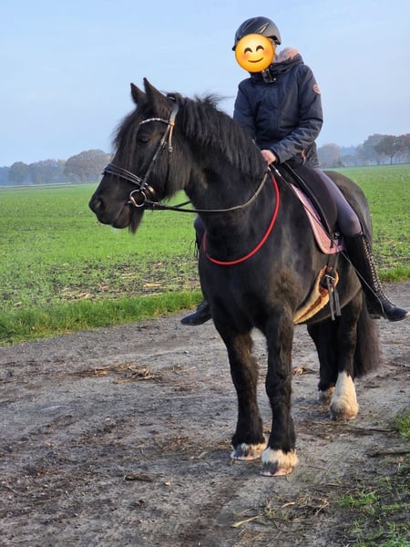 Due to health reasons, I have decided to sell our lovely Tinker mare. Our mare is very fond of and enjoys riding in the terrain – she loves it. In dressage work, she still needs a bit more experience and variety. We recently started classical groundwork with her. She is honest – no bad habits such as bucking or similar behavior. Her teeth were treated in October, and she received a comprehensive blood test. In November, she had an osteopathic treatment. She is regularly vaccinated (tetanus & influenza) and dewormed. Since our mare has a strongly pronounced character, she requires a confident and experienced rider who works with her calmly and consistently. NOT suitable for beginners!