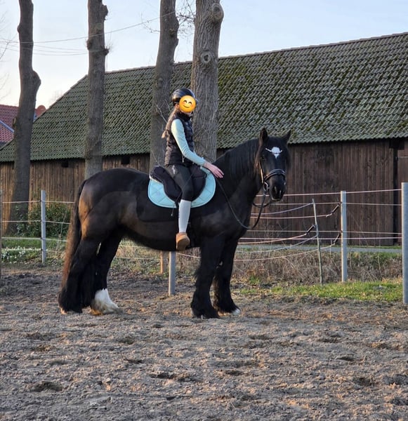Wir möchten unsere 9 jährige, 1,52m große Tinkerstute verkaufen. Lilly ist ein tolles Freizeitpferd mit dem man Spaß haben kann. Ausritte, sowohl alleine, als auch in der Gruppe sind kein Problem - sie wurde überwiegend im Gelände geritten. Auf dem Reitplatz benötigt Lilly ein bisschen Motivation und Abwechslung bei der Arbeit. Auch Bodenarbeit (Ansätze der klassischen Handarbeit) und Zirkuslektionen kennt sie. In der Haltung & Fütterung ist sie unkompliziert. Uns sind keine Krankheiten bekannt. Geimpft (Tetanus & Influenza) regelmäßig Entwurmt (3/2026) regelmäßig Hufpflege 1 x jährlich Zähne (10/2025) Osteopathische Behandlung (11/2025)