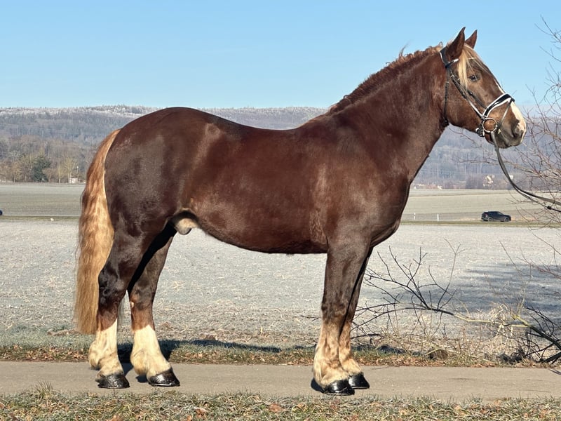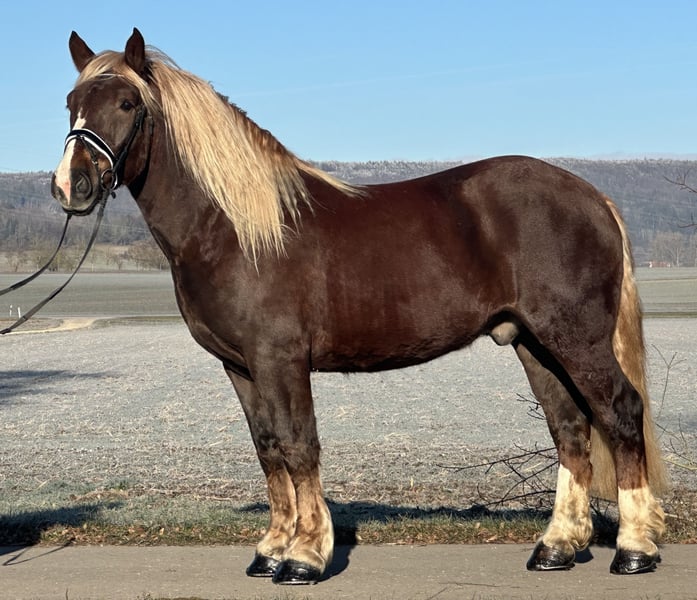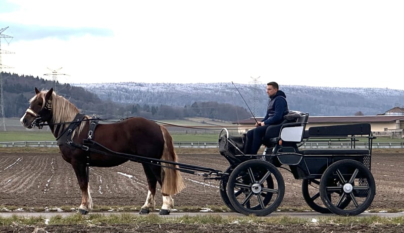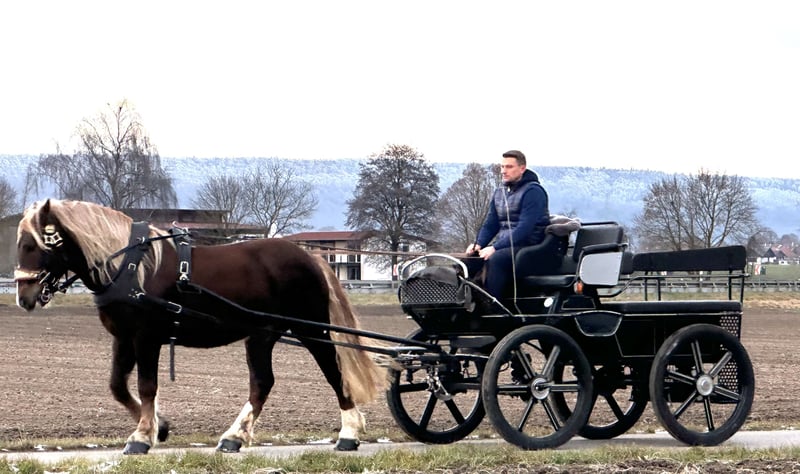 Netter Wallach der ein ,- zweispännig gefahren sowie im Gelände und in der Halle geritten ist. Er steht momentan auf vier Eisen ist beim Schmied sehr brav und gelassen