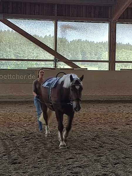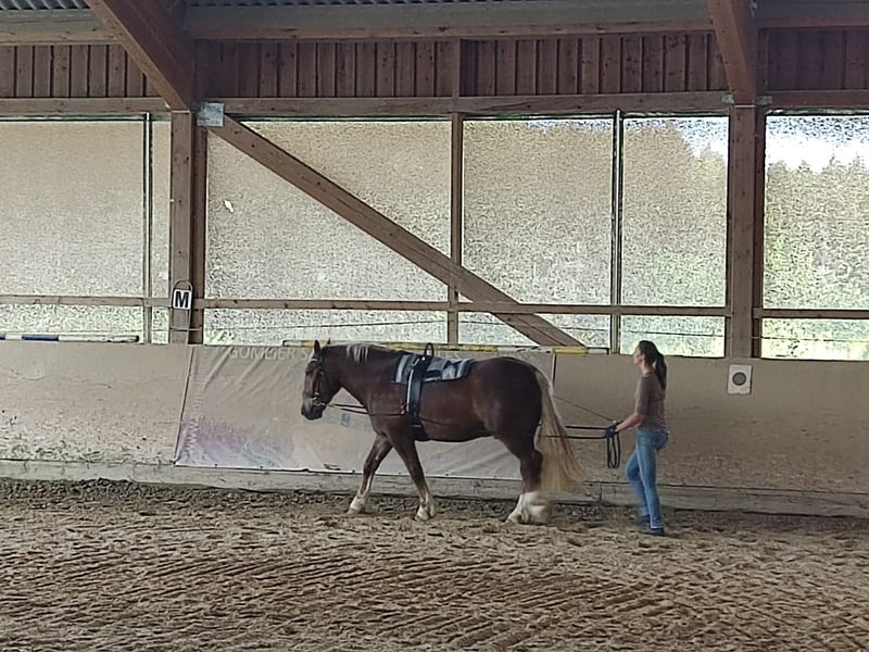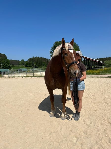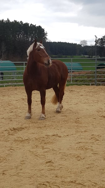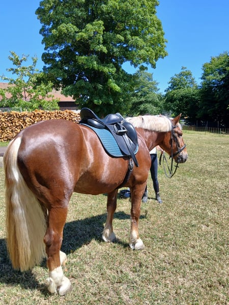 Zum Verkauf steht mein geliebter Siggi. Er wird im Mai 7 Jahre alt, ist absolut menschenbezogen, verspielt, arbeitswillig und kinderlieb. Siggi kennt den Schmied (läuft barhuf), Tierarzt, verladen und Hänger fahren, spazieren gehen, Doppellonge, Langzügelarbeit, Bodenarbeit, Reiten in der Halle und auf dem Platz, Traktoren, Hunde, Katzen, Schafe, etc. Bei dem Vorbesitzer wurde er zur Vorbereitung zur Körung zudem auch eingefahren. Verkaufen muss ich ihn, weil er leider doch nicht für die Arbeit als Therapiepferd geeignet ist. Beim Reiten testet er gern mal, weshalb ich ihn nicht als Anfängerpferd hergebe. Er ist ein herzensguter Bub, der es liebt mit seinem Menschen zusammen zu sein. Er beißt nicht, tritt nicht und passt unglaublich gut auf kleine Kinder auf!! Gesundheitlich ist er, ausgenommen eines Juckreizes (aufgrund der massenhaften Fliegen in unserer Region), topfit. Das Jucken ist gut händelbar durch Fliegendecke, Salbe und getreidefreie Ernährung. Er ist regelmäßig entwurmt, geimpft, Zähne gemacht und physiotherapeutisch behandelt. Er hatte noch keinerlei größere Verletzungen oder gar OP's. Eine AKU von meinem Kauf vor ca. 3 Jahren kann gerne eingesehen werden. Für Siggi suche ich jemanden mit Herz, Pferdeverstand und Erfahrung. Er ist am zufriedensten in einer Offenstallhaltung. Mit anderen Pferden ist er absolut verträglich. Er kann fair den Chef markieren, lässt sich aber auch mal in die Schranken weisen, auch von einer Shettydame. Wer diesen lieben Kerl kennenlernen möchte, oder noch Fragen hat, bitte gern melden. Probereiten ist, sobald er wieder etwas mehr im Training ist (Pause durch meine Schwangerschaft), jederzeit möglich. Sein gesamtes Equipment ist gegen einen fairen Aufpreis natürlich gern zu haben.