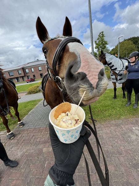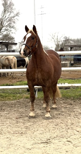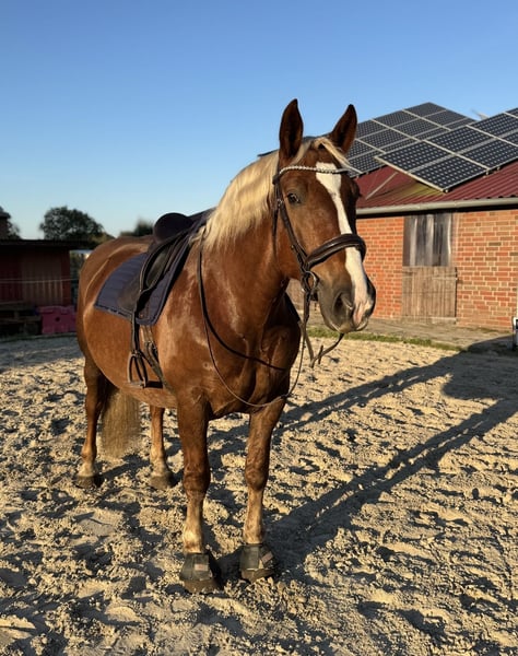 Met pijn in het hart zoek ik voor mijn geweldige ruin Max een nieuw thuis. Max is een Zuid-Duitse koudbloed van nu bijna 7 jaar oud, met een stokmaat van ongeveer 1,68 m. Hij overtuigt vooral door zijn uitzonderlijk vriendelijke, open en rustige karakter. Max is zeer mensgericht, nieuwsgierig en in de omgang absoluut probleemloos. Een echte knuffelbeer. Vorig jaar is hij op zesjarige leeftijd voorzichtig zadelmak gemaakt en toonde vanaf het begin zeer coöperatief en volledig ontspannen. Na slechts enkele weken ging hij betrouwbaar de buitenritten aan. Max wordt momenteel recreatief gereden, kent dressuurwerk en houdt vooral van buitenritten. In het terrein toont hij zich als een uiterst betrouwbare partner. Hij is ijverig, beschikt over goede basisgangen en is geen traag paard. Hij heeft plezier in alle vormen van werk en staat voor alles open (vrijheids- / grondwerk, dubbele longe, rijden, buitenritten etc.). Hij is momenteel vierkant beslagen, maar dit is enkel omdat hij op geplaveide oppervlakken en kunstgras staat, waar de slijtage anders te groot is. Hoefijzers zijn verder absoluut niet nodig. Hij kent de smid, dierenarts, trailer rijden en toont zich daarbij altijd onbevreesd en kalm. Max is gezond en heeft geen bekende aandoeningen. Hij staat momenteel in een openstal / actiefstal in een grote kudde en is zeer goed te combineren met andere paarden. Hij kent gemengde kuddes evenals ruwe hengstenkuddes. Max wordt uitsluitend afgestaan wegens gebrek aan tijd, omdat ik twee paarden heb en niet meer aan hem kan voldoen. De verkoop gebeurt alleen als alles echt klikt, aangezien het geen noodgeval is. Hij wordt alleen in goede handen geplaatst. Aanvragen van handelaren etc. worden niet beantwoord.
