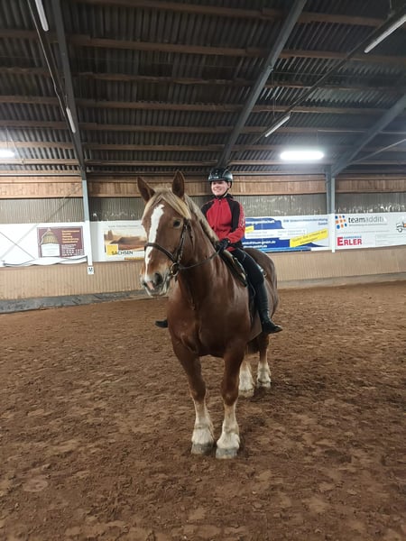 Ein Herz aus Gold auf vier Hufen – brave Kaltblutstute für Kinder & entspannte Ausritte Manche Pferde sind einfach etwas ganz Besonderes – diese 9-jährige Süddeutsche Kaltblutstute gehört definitiv dazu. Mit ihrer ruhigen, liebevollen Art gewinnt sie sofort die Herzen aller, die ihr begegnen. Seit einiger Zeit läuft sie zuverlässig im Schulbetrieb und ist dort ein absoluter Schatz – vor allem für Kinder. Geduldig, nervenstark und immer freundlich meistert sie ihre Aufgaben mit einer Selbstverständlichkeit, die man sich nur wünschen kann. Auch unsicheren Reitern gibt sie jederzeit ein gutes und sicheres Gefühl. Besonders hervorzuheben ist ihre Gelassenheit im Gelände: Ob allein oder in der Gruppe – sie ist eine ideale Partnerin für entspannte Ausritte und genießt diese sichtlich. Wer ein Pferd sucht, mit dem man einfach abschalten und die Natur genießen kann, ist bei ihr genau richtig. Sie ist solide ausgebildet, geht brav in allen drei Grundgangarten und lässt sich angenehm und unkompliziert reiten. Im Umgang zeigt sie sich sehr menschenbezogen und absolut unkompliziert. Sie ist gesund, regelmäßig geimpft und entwurmt. Schmied und Tierarzt sind für sie selbstverständlich kein Problem. Wir wünschen uns für sie ein liebevolles Zuhause, in dem sie weiterhin geschätzt wird – sei es als treuer Freizeitpartner, Familienpferd oder im Schulbetrieb. Bei ernsthaftem Interesse freuen wir uns über eine Nachricht.