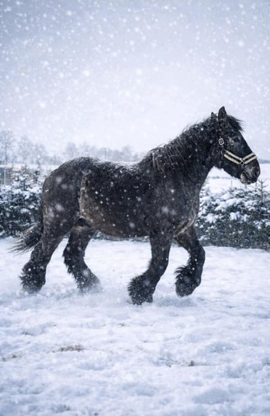 1.5-year-old Belgian Draft cross gelding in a rare blue color. With original Belgian pedigree papers. Very balanced, friendly temperament, people-oriented and calm. He has a strong, breed-typical draft build, developmentally appropriate for his age. A beautiful young horse with great potential for carriage driving and forest work. Thanks to his calm, balanced nature, he is also suitable for leisure riding, therapy, and future riding activities. He is farrier- and loading-friendly. Additionally, he is regularly vaccinated and dewormed. Currently stands at 15.8 hh.