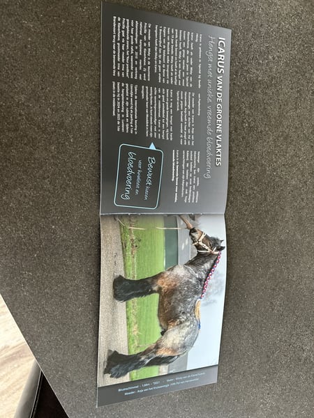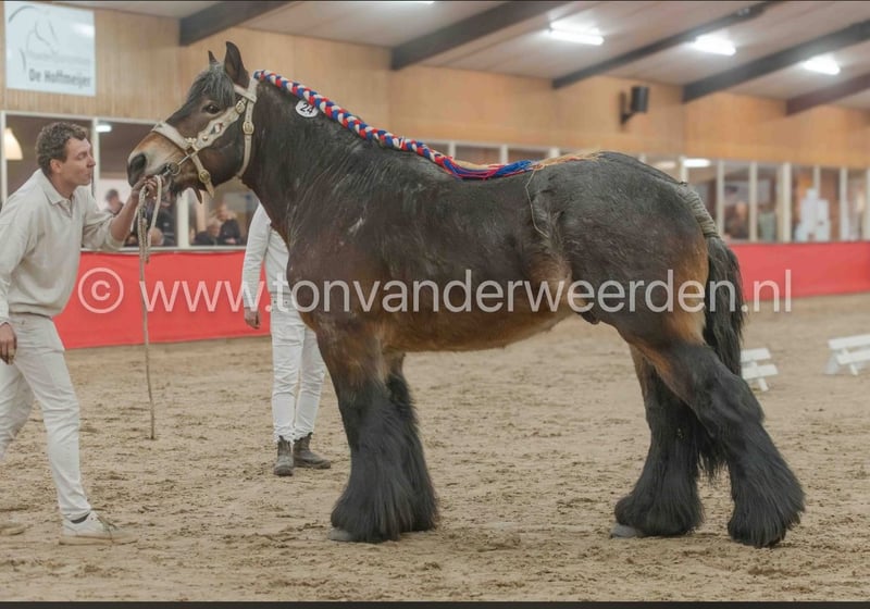 Te koop een mooie goedgekeurde trekpaardhengst van 5 jaar oud. Gemakkelijk in de omgang. Hard beenweek: zijn vader is reeds 21 jaar oud. Keuringsrapporten aanwezig