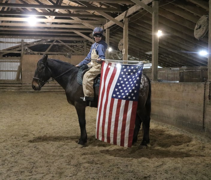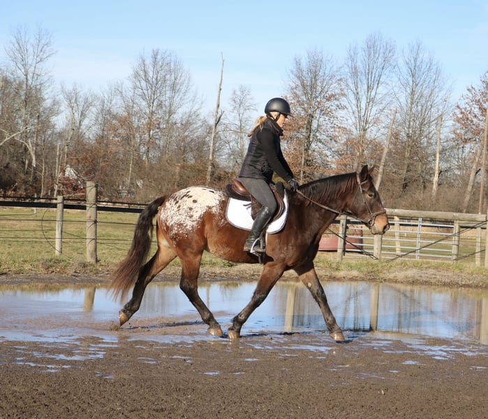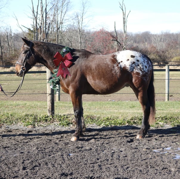 🎄𝐓𝐇𝐄 𝑯𝒐𝒍𝒊𝒅𝒂𝒚 𝐂𝐋𝐀𝐒𝐒𝐈𝐂🎄 Happening now thru MONDAY | DECEMBER 15th - Available EXCLUSIVELY on HorseBid's website! For more details and to register visit: www.Horsebid.com CONSIGNOR CONTACT: Heather Ritz 610-247-5671 LOCATION: Perkasie, PA BREED: Belgian X Appaloosa REGISTERED: No COLOR: Bay HEIGHT: 15.3 AGE: 4 GENDER: Gelding Graffiti 4 yo Belgian x Appaloosa Gelding. Graffiti has an exceptional temperament for a 4 year old and behaves like a 10 year old. Barefoot and sound with no known injuries to maintenance. He is up to date. He is turned out in a mixed herd and gets along with everyone. He doesn’t crib, bite, kick, or weave. On the ground, Graffiti is a big puppy dog. He loves people and has a great personality. He is easy to catch, stands tied, clips, loads, and bathes. He is good for the vet/farrier and loads/hauls well. He is a barn favorite and everyone who meets him falls in love with him. In the arena, Graffiti rides both english and western. He stands like a rock to be mounted from the ground or by a block. He walk trot canters and picks up both leads. He is jumping small courses with room for more. He has also been schooled over cross country fences. Graffiti is used to tarps, flags, and the oversized jolly ball. Out on the trails, Graffiti is well seasoned. He will haul out alone or in a group. He crosses water, bridges, and traffic. Graffiti has been hauled off property and is always the same. He loves to swim and is sure footed on rough terrain. Graffiti would be an amazing family horse with his calm kind demeanor. He can tote a husband around on the trails one day and go foxhunting or showing the next.