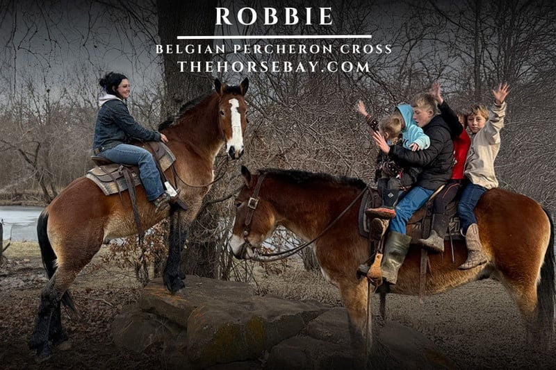 OPEN BIDDING ON THEHORSEBAY,COM. SALE ENDS ON 02/19. More information is available on the website, including an UTD vet inspection, Coggins, video, images, and the owner's contact information to ask questions, request information, or make arrangements to come to visit. Meet Robbie, a 4-year-old Belgian/Percheron gelding! 16hh! Absolutely kid safe! Rides& drives single& double! True gentle giant, these good horses are just plain born this way. We just help them along! Smooth at all gates! No holes, issues, or vices of any kind. He leads, loads, and ties as he should! He rides out alone or in groups and gets along well with others! More whoa than go! Athletic enough to hunt, gentle enough for granny, and a great all-around Mount! He has many trail miles, he’s absolutely traffic-safe, and nothing can shake this horse. He’s also great with a farrier. No stocks needed! Great feet, confirmation, and bone. Our kids have all ridden him between 5 to 11 years old! We love and enjoy having this kind to offer! Teeth done in January, fresh shod recent wellness exam, and vaccinated! Sheldon, Mo can help with shipping anywhere!