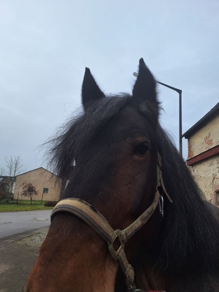 #Rasse falsch deklariert: niederländische Kaltblutstute Unsere liebe und schüchterne Lucie muss leider aus gesundheitlichen Gründen abgeben werden. Sie ist Hufschmied fromm und kennt den Umgang beim putzen und führen. Sie ist freundlich aber eine Skeptikerin. An neue Dinge muss sie behutsam herangeführt werden, danach meistert sie diese aber mit viel Freude und Zuverlässigkeit. Sie hat über dem links Auge eine Auswachsung welche operativ entfernt werden kann und sie nicht stört. Hinten rechts wird eine alter Sehnenschaden vermutet, der ihr ein etwas dickeren Bein beschert hat. Der Sehenschaden ist allerdings ausgeheilt und sie läuft lahmfrei. Sattel und Fahrgeschirr kennt sie noch nicht.