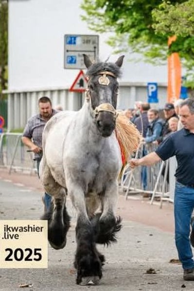 Blauwschimmel trekpaard merrie geboren 20/04/2022 geleerd op kordeel, zowel enkel als dubbelspan. eerlijk en werkwillig karakter.