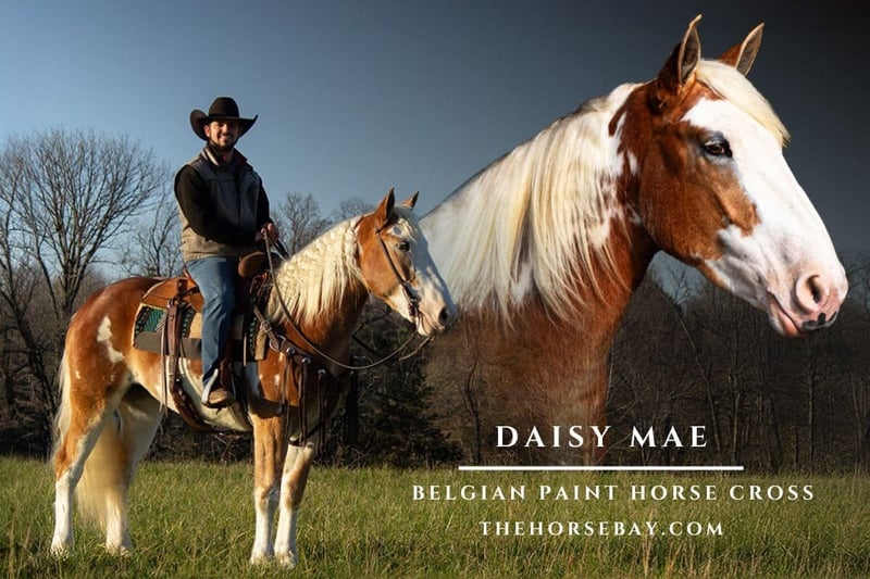 OPEN BIDDING ON THEHORSEBAY,COM. SALE ENDS ON 01/29. More information is available on the website, including an UTD vet inspection, Coggins, video, images, and the owner's contact information to ask questions, request information, or make arrangements to come to visit. ?Daisy Mae? Talk about a big boned draft cross that rides and moves like a quarter horse! Daisy Mae is a 2020 draft cross mare standing 16.1hh. She is an absolute sweetheart and has an in your pocket personality. Daisy doesn’t have a mean bone in her body and truly wants to be your best friend. She stands for mounting, saddling, bathing, grooming, farrier etc. She loads and hauls well. She can be kept out in the field with other horses or in the barn in a box stall. Daisy picks up both her leads with ease and has a true one step short lope. She is soft in the bridle and works well off leg pressure. She has a soft and easy backup and a nice quick stop. She has been extensively trail ridden and crosses water, logs or anything else in her path. Daisy has also been exposed to the arena obstacles and does them all. We have used her for ranch work also such as checking cows and repairing fences. Daisy can work all day and still keep a good attitude. It’s hard to describe how sweet of a gal she truly is! One of the coolest things about Daisy is that she can also be drove. We have used her in the buggy and carriages. She is not scared of traffic. She was raised by the Amish and has been used in all types of farm machinery. Daisy has great ground manners and is not pushy. She is broke to flags, tarps, whips and you can even shoot guns off her! Around our place she is always the one that gets picked first to do any job. Daisy Mae lives in Greensburg Ky.