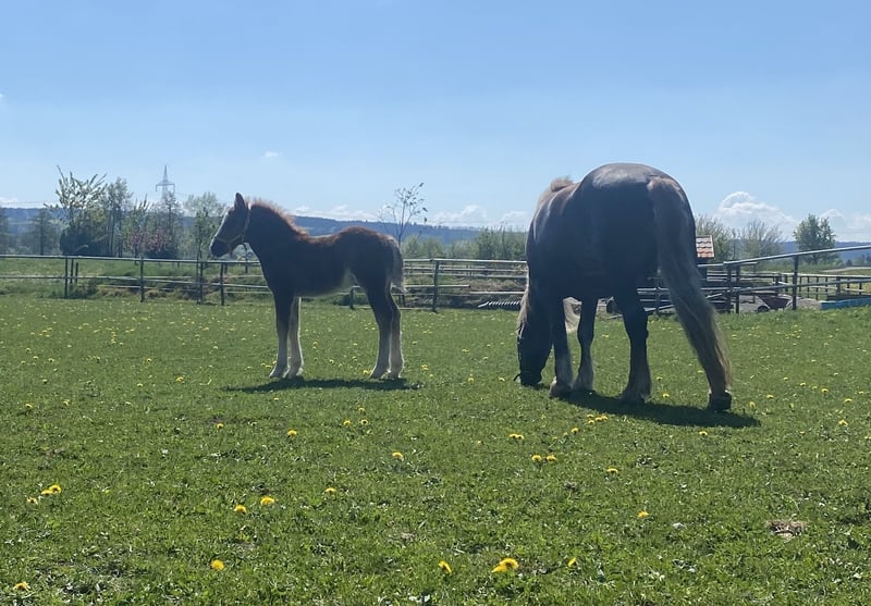 For sale is the charming Schwarzwälder chestnut colt Muffin, born in 2025. Muffin impresses with his particularly compact build, his attractive appearance, and his exceptionally calm, friendly nature. He is very people-oriented and a true friend to children – patient, curious, and absolutely easy-going in daily interactions. Muffin knows the basics of foal training and has everything a reliable leisure partner needs for the future. Despite his gentle nature, he is naturally looking for a person who can show him the world with clear guidance and a lot of heart. If you are looking for an uncomplicated young horse with great potential and the best character, we look forward to hearing from you. Viewings are possible at any time by appointment.