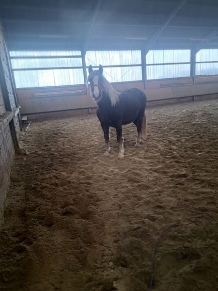 Raven, 2 jaar oud Zwarte Woud vos, ongeveer 150 cm schofthoogte Zijn vader is Wilando Geboortedatum: 12-04-2024, hij is NAAR Hij is vertrouwd met kinderen, honden en katten. Hij doet het heel goed met longeren. Tot voor kort stond hij in een open stal, ook bij -16 graden is hij nooit ziek geworden. Boxstal is ook mogelijk 😊 Hij is sinds een jaar gecastreerd. Momenteel komt hij alleen in een hengstengroep met ruinen. We hebben het nog nooit geprobeerd met merries. Na zijn castratie was hij nog lange tijd hengstig, daarom hebben we hem alleen bij ruinen gezet. Hij is super vriendelijk, hij heeft nog nooit getrapt of iets dergelijks gedaan. Hij is niet dominant, altijd in het midden van de rangorde geweest. Hij past zich uitstekend aan. Hij staat in Eschweiler, 52249. Hij heeft een vertrouwenspersoon nodig. De hoefsmid en dierenarts kent hij en gaat goed mee.