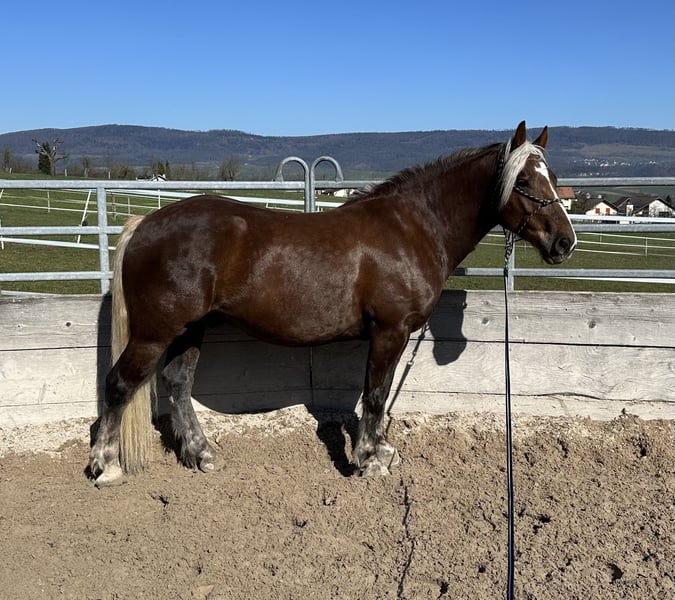 Schwarzwälder Kaltblut Wallach sucht Bestplatz Standort: Schweiz, Kanton Baselland Geburtsdatum: 05.02.2020 (etwas über 5.5 jährig) Stockmaß: ca. 152 cm, wächst noch 1-2cm Vater: Malibu VV: Modus von Montan Mutter: Nanny Mc Phee Herkunft: Schwarzwald Equidenpass vorhanden Importpapiere vorhanden - 01.04.2022 Er wurde mit zwei Jährig gelegt und dann von mir selber in die Schweiz importiert. Er ist neugierig und sehr menschenbezogen, lernfreudig, kontaktfreudig und freundlich. 🐴 Ausbildung und Arbeit • War von Sept. bis Dez. 2024 im Beritt • Beherrscht dem Alter entsprechend alle drei Grundgangarten unter dem Reiter, Übergänge, Rückwärtsrichten und Halten • Kennt Longieren und Bodenarbeit • lernt seit Ende Frühling das Gelände unter dem Reiter in Gruppen kennen. Dabei zeigt er sich sehr sensibel und auch ängstlich. Alleine war er noch nicht draussen. Ich habe ihn, seit ich ihn mit zwei Jährig in die Schweiz geholt habe. Er durfte im Herdenverband aufwachsen und ich lehrte ihm das Fohlen ABC, danach Bodenarbeit, sowie Spaziergänge im Gelände. Die weitere Ausbildung erfolgte durch einen professionellen Bereiter ruhig und schonend, seinem Wachstum entsprechend. Mit über 4.5 jährig startete der Beritt. Er wird freizeitmässig Western geritten, was aber noch gut geändert werden kann. Den momentanen Westernsattel habe ich in Miete, diese kann evtl. übernommen werden. Diverses Zubehör wie Trense, Westernzaum, Neoprenpad, Putzzeug, Apotheke etc. gebe ich dazu. 🐴 Haltung und Gesundheit • Steht zur Zeit in einer Paddock Box mit täglichen Weidegang. Ist sozial, kontaktfreudig und unkompliziert • jährliche Impfungen, sowie jährliche Zahnarztbesuche werden penibel eingehalten. Dabei zeigt er sich lieb und unkompliziert im Umgang mit der Tierärztin • alle vier Hufe beschlagen 🐴 Verkaufsgrund Ich habe ihn vor knapp 4 Jahren mit sehr starkem Übergewicht gekauft und mir erhofft, ihn durch meine Abnahme bald möglich reiten zu können. Nun steht ein Pferd, dass arbeiten möchte im Stall, ich bin aber noch viel zu schwer. Leider läuft die Gewichtsabnahme nicht so wie gewünscht und bringt auch weitere gesundheitliche Folgen mit sich, wodurch er zu wenig gefordert wird. Ich denke auch, dass mein reiterliches Können nicht für die weitere Förderung reichen wird. Ich wünsche mir für ihn eine ruhige Bezugsperson die ihn täglich Bewegen kann und eine grosse Weide mit anderen Pferden zum Spielen. Kein Kinder- oder Anfängerpferd AKU ohne Probleme möglich Gerne möchte ich ab und zu ein Bild von ihm bekommen und ihn, je nach Standort zwei- dreimal im Jahr an seinem neuen Platz besuchen. (Natürlich angemeldet) 😊 Ausserdem möchte ich das Vorkaufsrecht, bei Weiterverkauf, damit er kein Wanderpokal wird. 🐴 Preisklasse C - Aber Platz vor Preis