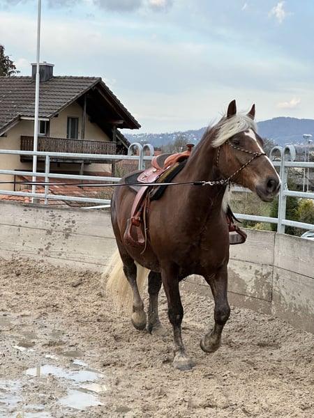Schwarzwälder Kaltblut Wallach sucht Bestplatz Standort: Schweiz, Kanton Baselland Geburtsdatum: 05.02.2020 (etwas über 5.5 jährig) Stockmaß: ca. 152 cm, wächst noch 1-2cm Vater: Malibu VV: Modus von Montan Mutter: Nanny Mc Phee Herkunft: Schwarzwald Equidenpass vorhanden Importpapiere vorhanden - 01.04.2022 Er wurde mit zwei Jährig gelegt und dann von mir selber in die Schweiz importiert. Er ist neugierig und sehr menschenbezogen, lernfreudig, kontaktfreudig und freundlich. 🐴 Ausbildung und Arbeit • War von Sept. bis Dez. 2024 im Beritt • Beherrscht dem Alter entsprechend alle drei Grundgangarten unter dem Reiter, Übergänge, Rückwärtsrichten und Halten • Kennt Longieren und Bodenarbeit • lernt seit Ende Frühling das Gelände unter dem Reiter in Gruppen kennen. Dabei zeigt er sich sehr sensibel und auch ängstlich. Alleine war er noch nicht draussen. Ich habe ihn, seit ich ihn mit zwei Jährig in die Schweiz geholt habe. Er durfte im Herdenverband aufwachsen und ich lehrte ihm das Fohlen ABC, danach Bodenarbeit, sowie Spaziergänge im Gelände. Die weitere Ausbildung erfolgte durch einen professionellen Bereiter ruhig und schonend, seinem Wachstum entsprechend. Mit über 4.5 jährig startete der Beritt. Er wird freizeitmässig Western geritten, was aber noch gut geändert werden kann. Den momentanen Westernsattel habe ich in Miete, diese kann evtl. übernommen werden. Diverses Zubehör wie Trense, Westernzaum, Neoprenpad, Putzzeug, Apotheke etc. gebe ich dazu. 🐴 Haltung und Gesundheit • Steht zur Zeit in einer Paddock Box mit täglichen Weidegang. Ist sozial, kontaktfreudig und unkompliziert • jährliche Impfungen, sowie jährliche Zahnarztbesuche werden penibel eingehalten. Dabei zeigt er sich lieb und unkompliziert im Umgang mit der Tierärztin • alle vier Hufe beschlagen 🐴 Verkaufsgrund Ich habe ihn vor knapp 4 Jahren mit sehr starkem Übergewicht gekauft und mir erhofft, ihn durch meine Abnahme bald möglich reiten zu können. Nun steht ein Pferd, dass arbeiten möchte im Stall, ich bin aber noch viel zu schwer. Leider läuft die Gewichtsabnahme nicht so wie gewünscht und bringt auch weitere gesundheitliche Folgen mit sich, wodurch er zu wenig gefordert wird. Ich wünsche mir für ihn eine ruhige Bezugsperson die ihn täglich Bewegen kann und eine grosse Weide mit anderen Pferden zum Spielen. Kein Kinder- oder Anfängerpferd AKU ohne Probleme möglich Gerne möchte ich ab und zu ein Bild von ihm bekommen und ihn, je nach Standort zwei- dreimal im Jahr an seinem neuen Platz besuchen. (Natürlich angemeldet) 😊 Ausserdem möchte ich das Vorkaufsrecht, bei Weiterverkauf, damit er kein Wanderpokal wird. 🐴 Platz vor Preis