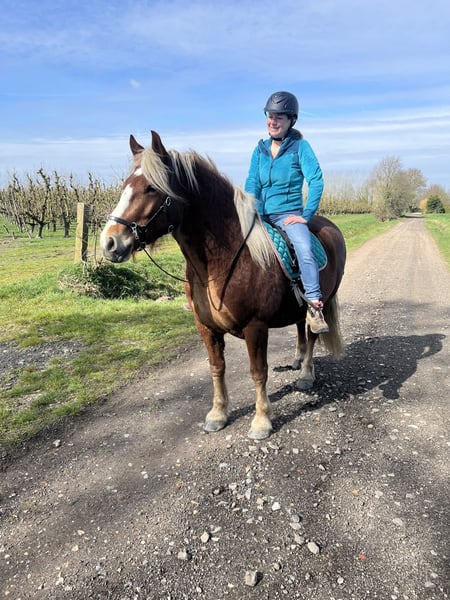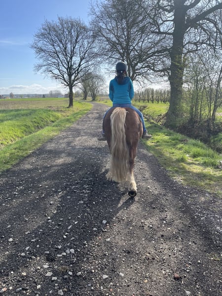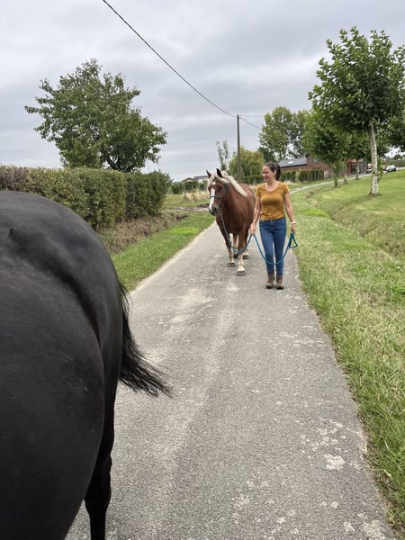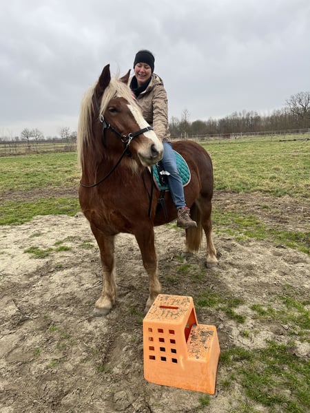 Voor Dahlia zijn we op zoek naar een 5⭐️ huisje. Dahlia is een schwarzwalder fuchs merrie van bijna 5 jaar(mei 2021). Vader: Wilano Moeder: Dhana Ze is een echte allrounder, houdt van aandacht en is een echte waterrat. Omwille van haar leeftijd is Dahlia beginnend zadelmak en beheerst ze stap en draf onder het zadel, maar moet ze vooral nog heel veel kilometers maken. Dahlia kent heel wat grondwerk en de knopjes die je nodig hebt onder het zadel, staan er vanop de grond al allemaal op. Ze is bitloos en met barebackpad zadelmak gemaakt. Ze heeft een gouden karakter, is super werkwillig en zal alles voor je doen. Dahlia gaat heel graag wandelen en kijkt van weinig op. We hopen voor Dahlia dan ook iemand te vinden die echt plezier met haar wil maken, gaan buitenrijden, zwemmen en best word ze ook sober gehouden. Een goede en blijvende thuis is voor ons dus ook heel erg belangrijk. Dahlia word elke 6 weken bekapt, is altijd ontwormd aan de hand van mestonderzoek en ziet half jaarlijks de tandarts en osteopaat.