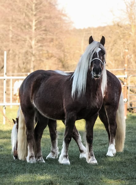 For sale is our 6-year-old Black Forest mare Lilly, born in May 2020. She is by Milan (sire: Maitanz) out of Widukind. She measures approximately 1.52 meters at the withers. Lilly is registered in the Studbook I and foaled a wonderful filly in 2025. She can be covered again in 2026. Due to a hoof space issue, she is only conditionally suitable for riding. She is familiar with basic groundwork and has attended a trail course. She is accustomed to both box and pasture turnout and is a friendly, open-minded mare. Lilly is regularly vaccinated, dewormed, and her teeth have been checked and treated. She is free of PSSM1 (n/n). She is only available to experienced riders. Not suitable for beginners. For further questions, please feel free to contact us by phone at 0151-70130244. This is a private sale, without warranty or return.