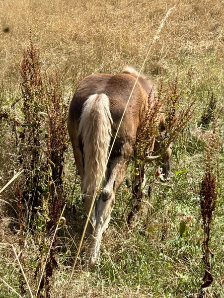 Delila cerca il suo ambiente. È amichevole e affettuosa, può già rimanere da sola al pascolo. Sta in branco 24 ore su 24, 7 giorni su 7 al pascolo. Conosce l'ABC dei puledri, va come cavallo da mano in escursione, conosce auto, trattori..., si lascia caricare e conosce il trasporto in trailer. Maggiori informazioni e video tramite WhatsApp. 01729278199 Posizione 74670