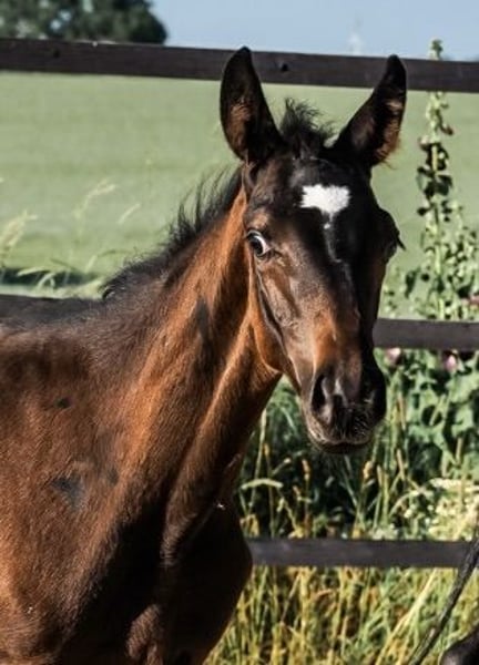 Unser kleiner Verti ist ein bewegungsstarkes, sehr sportlich geprägtes Versprechen auf höhere Aufgaben. Vielseitig gezogen, vereint er Springvermögen mit guter Bewegung. Gesund und korrekt. Gerade der Schritt und Galopp sind mit einer Bewertung von 8,0 Punkten hervorzuheben. Insgesamt erreichte Punktzahl 54. Seine Zeichnung und Ausdruck, machen den Kleinen zu einem echten Blickfang. Wir geben uns sehr viel Mühe dabei unsere Fohlen von der Trächtigkeit bis hin zum Absetzten gesund aufzuziehen. Unsere Fohlen genießen ausgiebigen Weidegang vom ersten Tag. Gutes Fütterungsmanagement, Parasitenmanagement und regelmäßiges Vorstellen beim Hufschmied sind ebenso gegeben wie routinemäßiges Vorstellen beim hauseigenen Tierarzt. Unsere Fohlen befinden sich derzeit im schonenden Absetzprozess und können frühestens Ende Oktober final abgesetzt werden (gerne später). Gerne ziehen wir den kleinen Hengst auch weiter für Sie auf. www.gestuethoheneichen.de oder auf instagram: gestuethoheneichen Wir haben noch weitere Hengstfohlen und Jährlingsstuten im Angebot!
