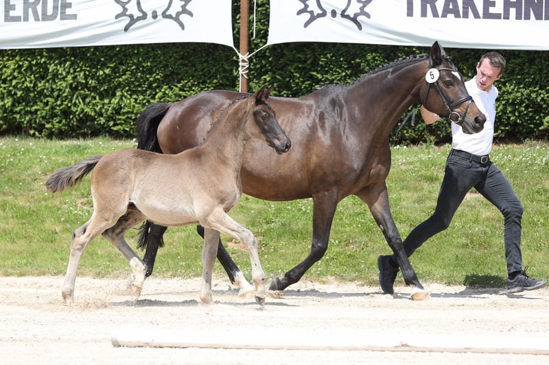 Les débuts de reproducteur du fils de Millennium Halcon, qui représente lui-même une maison maternelle très bien documentée du point de vue du dressage, sont une réussite. Il a également réussi ses premières apparitions remarquées, qui l'ont vu gagner et se classer haut dans des épreuves de concours complet, conformément à son âge. Son fils séduit par sa présentation distinguée, empreinte de grande noblesse et d'une certaine distinction, qu'il célèbre souverainement lors de toutes ses apparitions. Son corps est construit de manière sportive, il est remarquablement musclé - un vrai paquet de force ! Avec une fluidité de mouvement sans effort, souple à chaque phase de sa prestation, sans jamais manquer de la force nécessaire et du rythme dynamique, il démontre ses talents pour de futures grandes tâches dans le sport. Sa mère a fait preuve d'une performance sportive exemplaire en épreuves de cross-country et de saut d'obstacles avant de se consacrer à ses tâches d'éleveur. En tant que fille de Herzog, elle est l'une des très rares filles de l'ancien champion fédéral des chevaux de concours complet.