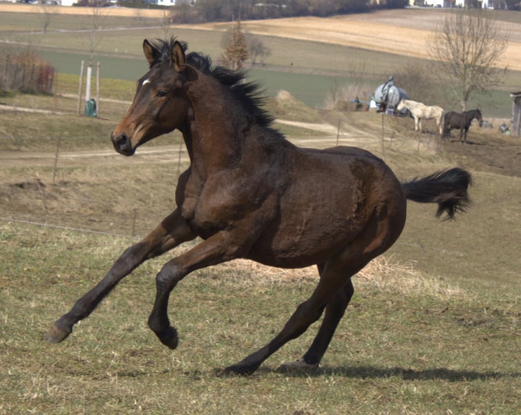 Sehr grossrahmiger Hengstjährling mit ordentlichen Bewegungen