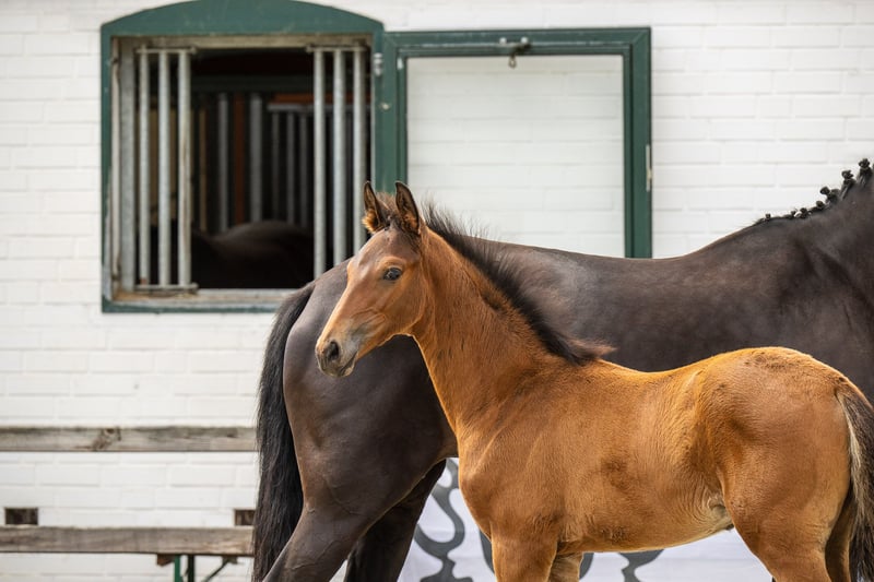 This tall stallion candidate and promising athlete gives reason to hope for a great future in eventing due to his extremely valuable genetics. His father, Tiago, was the best show jumping stallion of his licensing in 2023 and ideally combines the international course champions Cook du Midour AA and Iago C AA with the proven bloodlines of Hirtentanz and Humanus. The mother, Ashira, is descended from the legendary eventing sire Grafenstolz TSF, who consistently produces top horses and still ranks among the top 10 eventing sires in the WBFSH ranking. Furthermore, she is a half-sister to the CIC3* successful and former Bundeschampion of five-year-old eventing horses, Amazing Prince (by Prince Patmos). Energetic and powerful, this colt already made his debut at the Schleswig-Holstein Foal Championship, securing a place in the final ring. With an expressive face full of willingness to perform, he remained particularly calm in every situation, always rhythmically secure, diligent, and energetic in his movement. He impresses with his well-developed body parts, exemplary musculature, and an overall sporty appearance.
