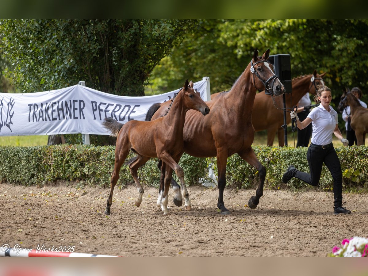 Hochprämierte Väter und Mütter sind im Pedigree vereint, die sowohl sportlich, als auch züchterisch Einfluss auf die Trakehner Zucht genommen haben. Der typvolle, braune Hengst präsentiert sich von Anfang an in einer sportlich-muskulösen Aufmachung. Der Hengst ist großrahmig mit einem korrekten und soliden Fundament. Seine Bewegungsabläufe sind taktvoll. Die Galoppade ist raumgreifend und gut untergesprungen, bei energischem Abdruck. Der Trab ist schwungvoll bei guter Mechanik. Sein Schritt ist raumgreifend und frei aus der Schulter heraus. Sein Vater STATEMENT entstammt mütterlicherseits aus der einem der erfolgreichsten Familienzweige der Trakehner Population mit vielen sporterfolgreichen Nachkommen in den schweren Klassen und in der Zucht. Die Mutter KAMIA entstammt der erfolgreichen Familie T7A1 der Kassandra vom Gestüt Webelsgrund, aus der ebenfalls eine Vielzahlerfolgreicher Nachkommen in Sport und Zucht entstammen. Aus der direkten Familie der Mutter KAMIA kommt die Trakehner Bundessiegerstute 2004 KATE v. Friedensfürst, die Elitestute KAJA V und der Trakehner Bundessieger der 3-jährigen Stuten und Wallache KEANU. Die Familie der KASSIOPEIA III zeichnet sich durch ihre menschenbezogene, freundliche Zugewandtheit und einwandfreien Charakteren aus, die gleichzeitig einen hohen Arbeits- und Leistungswillen haben.