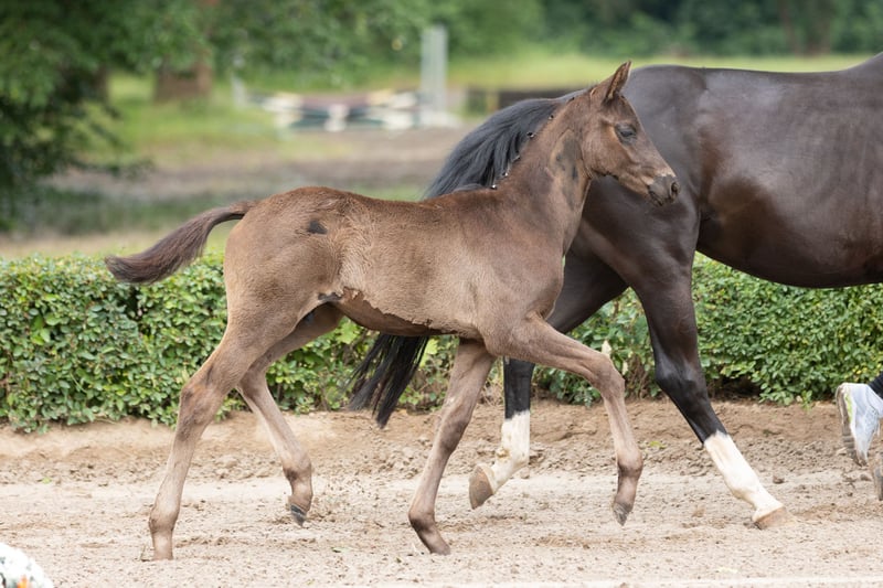 The father, awarded the elite title, holds a prominent position among the Trakehner stallions; he reliably passes on nobility and beauty, dynamic movement, and high rideability. His son, born in March, is also characterized by a very special nobility and distinction; he impresses with his harmonious and rideable body parts, and he moves dynamically and lightly, always in rhythm and in beautiful self-carriage. He is also a gem in terms of character: confident, very people-oriented, he impresses with his exemplary attitude towards all tasks presented to him, naturally halter-trained, loading-friendly, and raised in a natural herd environment. A promising young talent for riding, with his great abilities for a promising career, he will only bring joy.